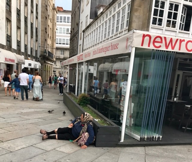 In continuare, ne-am plimbat pe străduțele înguste din vechiul centru al orașului unde am descoperit fel de fel de magazine drăguțe, restaurante cu specific galician (fructe de mare, in special caracatița) niște patiserii, un magazin de brânza locală. Și o alta țiganca la cerșit… Nu neaparat in aceasta ordine.