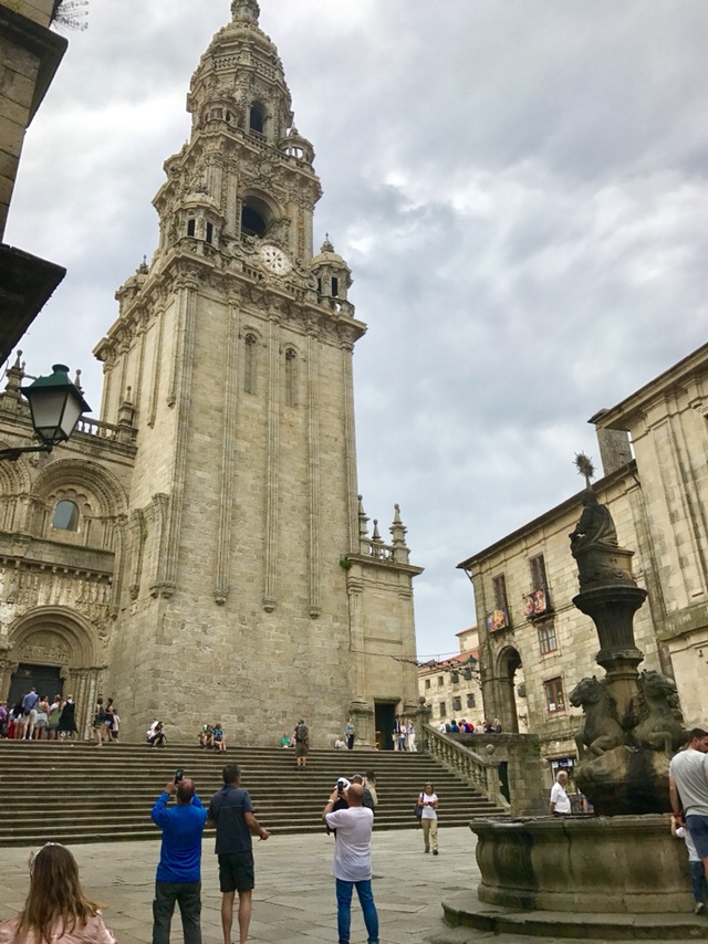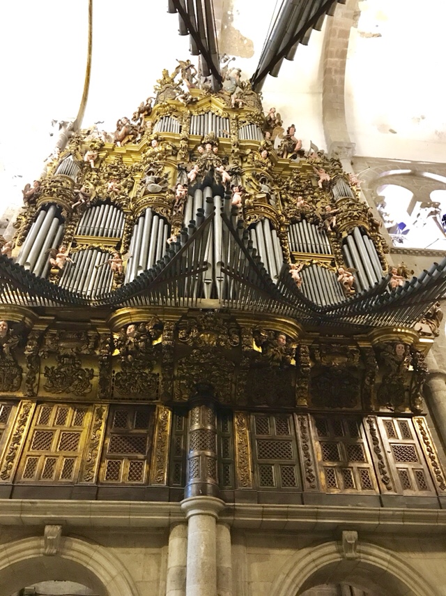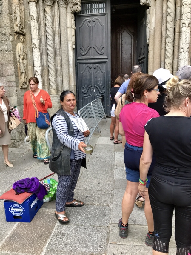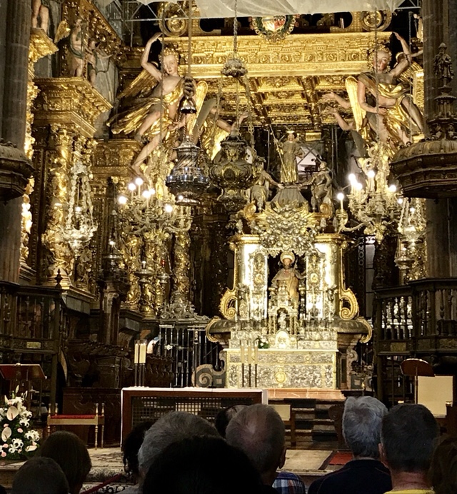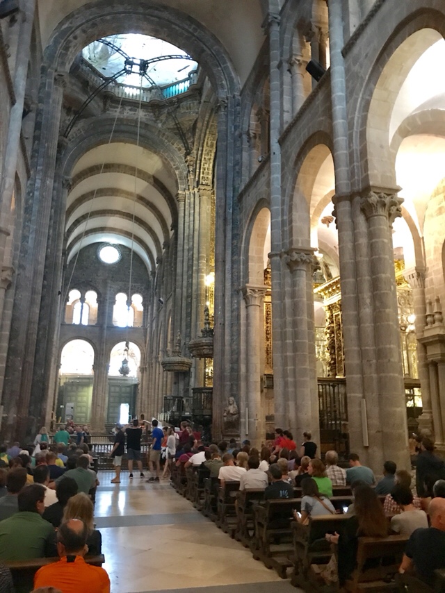 Apoi am stat sa ascultam Mesa. Cu greu am reușit să găsim un loc pe o banca, biserica fiind înțesată de lume. Unul din preoții care au oficiat Mesa a început “programul” prin a mulțimi sutelor de pelerini prezenți pentru curajul și credinta lor de a străbate acest drum lung pana la Santiago. Printre numele acestora au fost și romani, și canadieni. Nu noi am fost vizați, evident. 😉