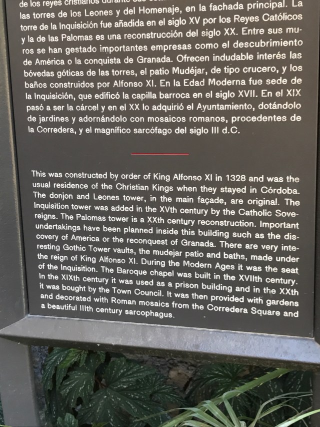 Prima oprire a fost la Alcázar de los Reyes Cristianos (Castelul regilor creștini).