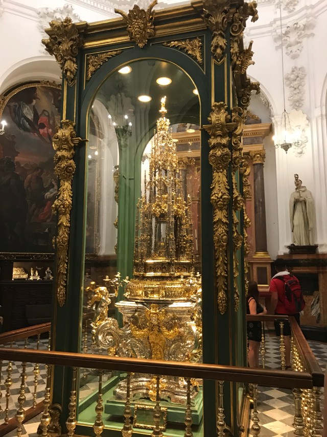 Tezaurul catedralei se găsește în Capela Santa Teresa. Aici am admirat multe obiecte religioase din aur și argint, printre care și icoana Virgenei de la Asuncion.