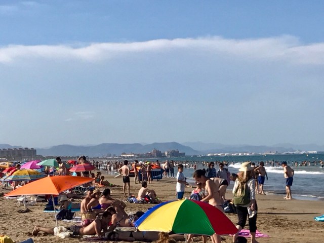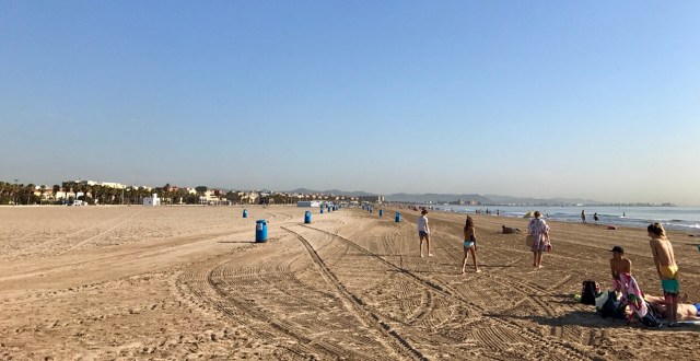 De cum am vazut prima oara plaja din Valencia am spus ca seamana mult cu plaja de la Mamaia. Exceptand palmierii si terasele mult mai ofertante. Plaja in sine. Nisipul este la fel, de la pietonala pana sa intri in mare mergi de iti vine rau, iar in apa te plictisesti de inaintat pana iti vine apa pana la buric. Din acest punct de vedere, este un loc foarte bun de mers cu copii mici. Nu trebuie sa stai intruna cu ochii pe ei. Iar temperatura apei este nemaipomenita: cam ca in Mexic in luna iulie – calda. Mult mai calda decât in Barcelona…