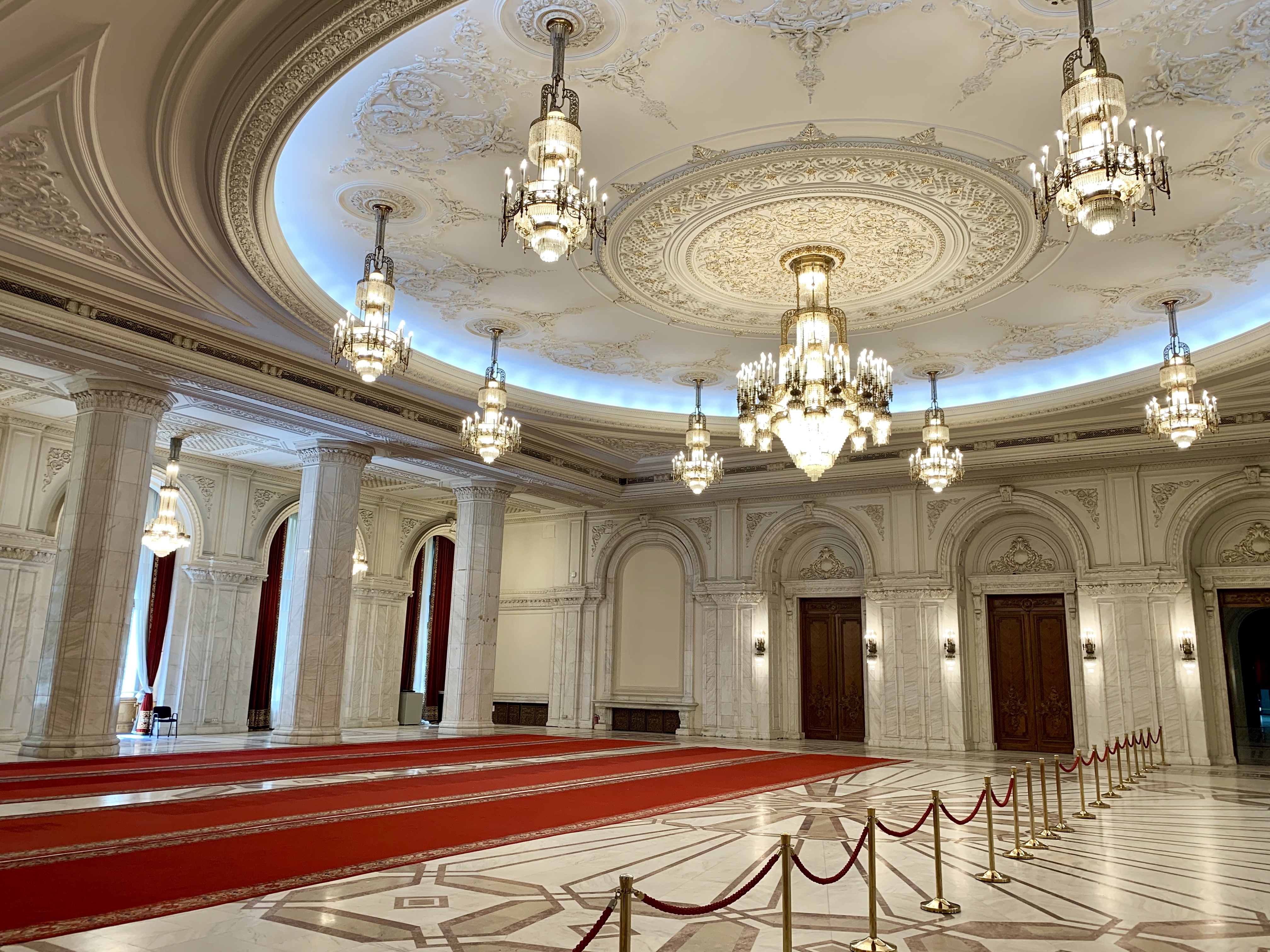 De menționat ca totul este făcut in România, de la marmura, covoare, tapiserii, tablouri, obiecte de decor. Singura excepție sunt ușile de la câteva Sali care sunt din mahon, lemn care nu se gaseste in țara și care a fost donat de prietenul Mobutu Sese Seko pentru întreținerea unor relații cordiale de prietenie și întrajutorare cu poporul roman. 😁
