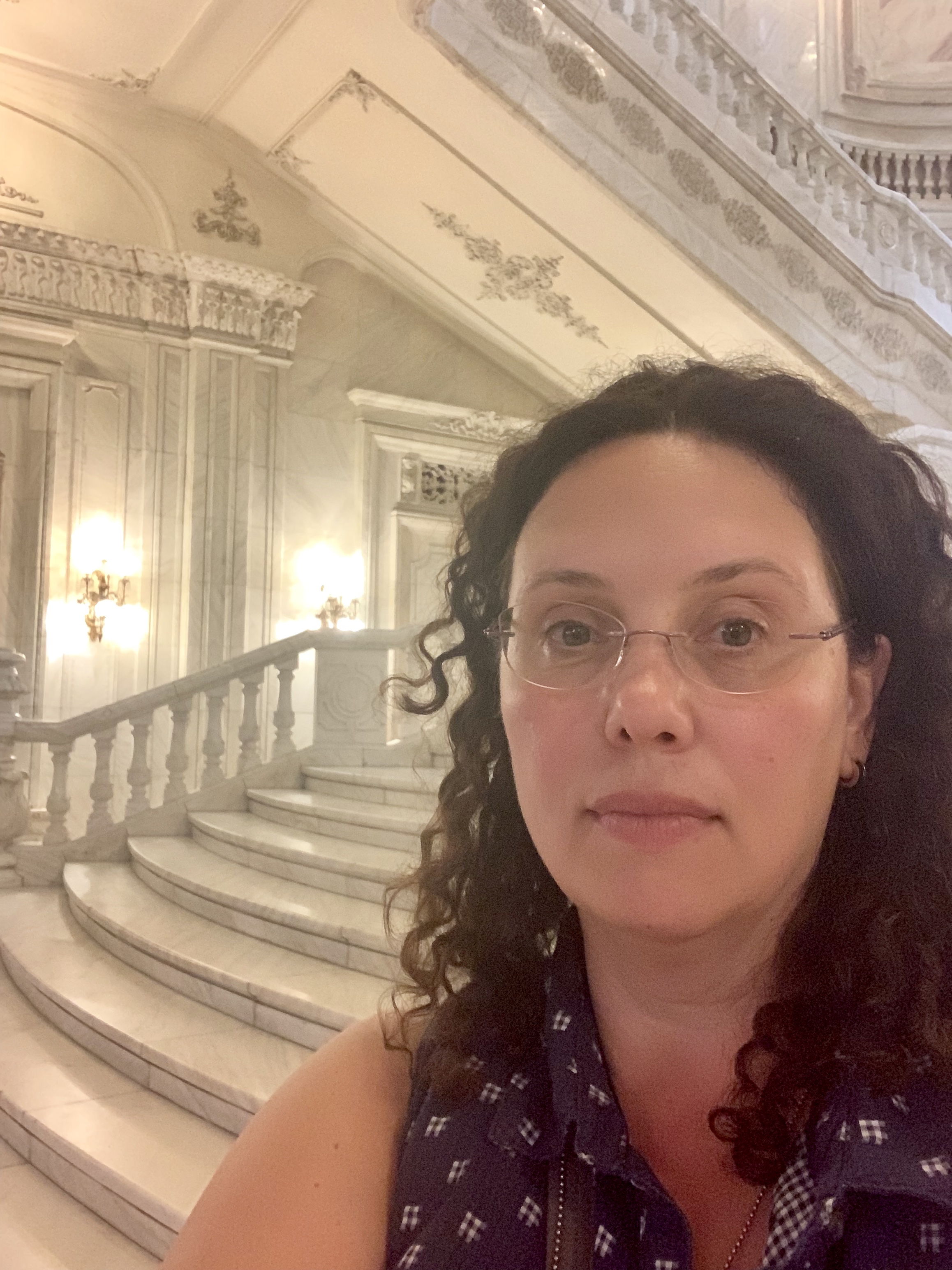Eu – surprinsă, ca sa nu spun șocată, de minunea de scara de marmura a lui Ceaușescu.