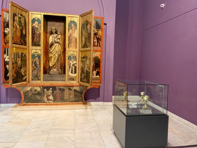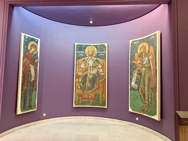 Am trecut apoi la Galeria de Artă Veche Românească. Aici am văzut obiecte de arta cu proveniența din Țările Române din secolul al XIV-lea până în prima jumătate a secolului al XIX-lea. Sunt expuse aproximativ 900 de icoane, fragmente de frescă, broderii, manuscrise, tipărituri, argintărie, podoabe, sculptură în lemn şi piatră precum și obiecte de ceramică.