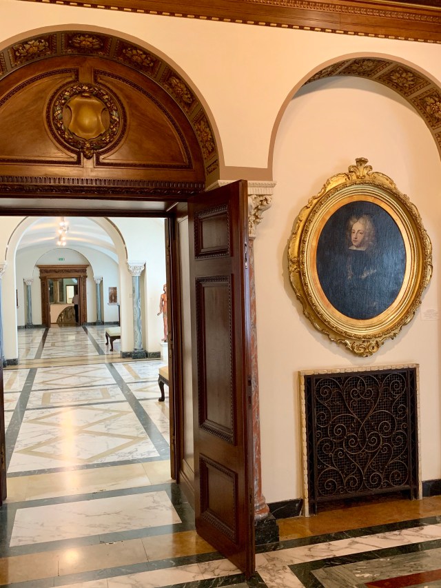 Fiica mea, curioasa, a vrut sa știe unde erau dormitoarele regale in acest palat. Am întrebat pe una din doamnele care lucrează la aceasta galerie și se pare ca acestea au fost transformate in birouri administrative. Partea aceea a palatului unde erau camerele persoanele regale, inclusiv biblioteca și saloane private, nu sunt deschise publicului. Aici este ușa care împiedica accesul publicului.