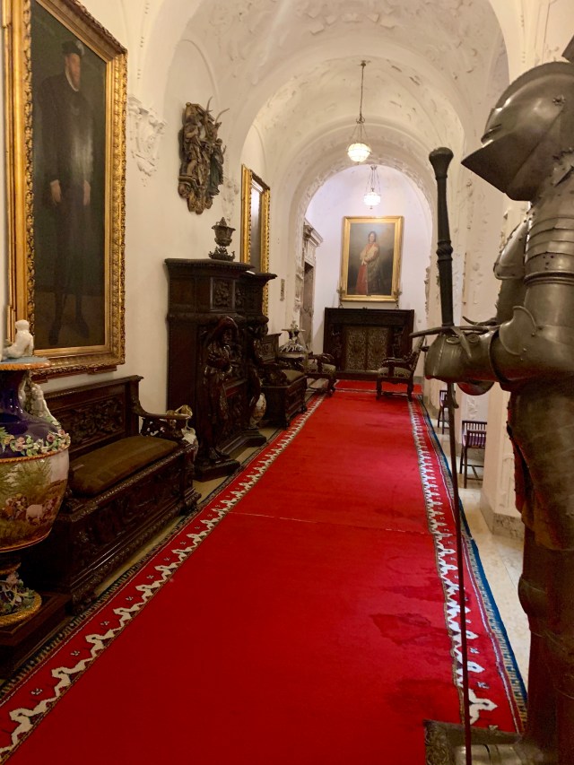 Există două intrări – una prin lateral pentru turiștii români, și una pentru cei străini, mai centrală. Înțeleg motivele logistice, dar nu mi-a plăcut cum sunt tratati turiștii romani: George, care a mers cu grupul de romani, a intrat în castel cumva pe ușa din spate… Sunt sigur că se poate și altfel.