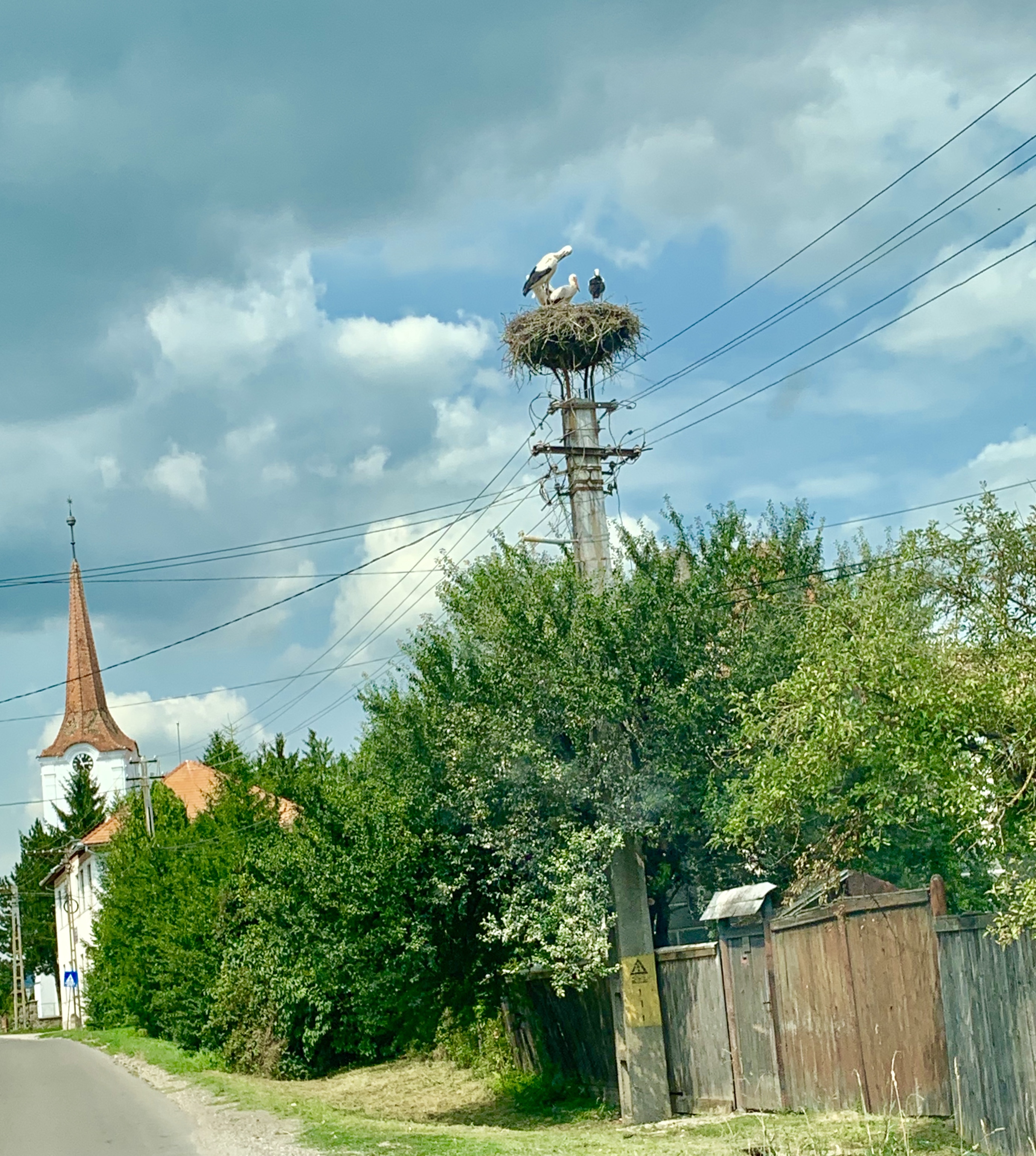 Într-un sat sau comuna, nu mai țin minte cum se chema, am văzut cel puțin 15 cuiburi de berze. Anna era convinsă ca sunt pelicani, nemaiauzind înainte de acest tip de pasare. ☺️ Am încercat sa-i readuc aminte ca așa se da comanda aici, la barza șefa, când vrei un copchil năzdrăvan: îi spui ce vrei, fetița sau băiețel, și una din suratele ei ți-l aduce, 9 luni mai târziu, in cioc. … Evident, mi-a aruncat niște priviri de genul “încetează cu aiurelile astea, mama”… 😆