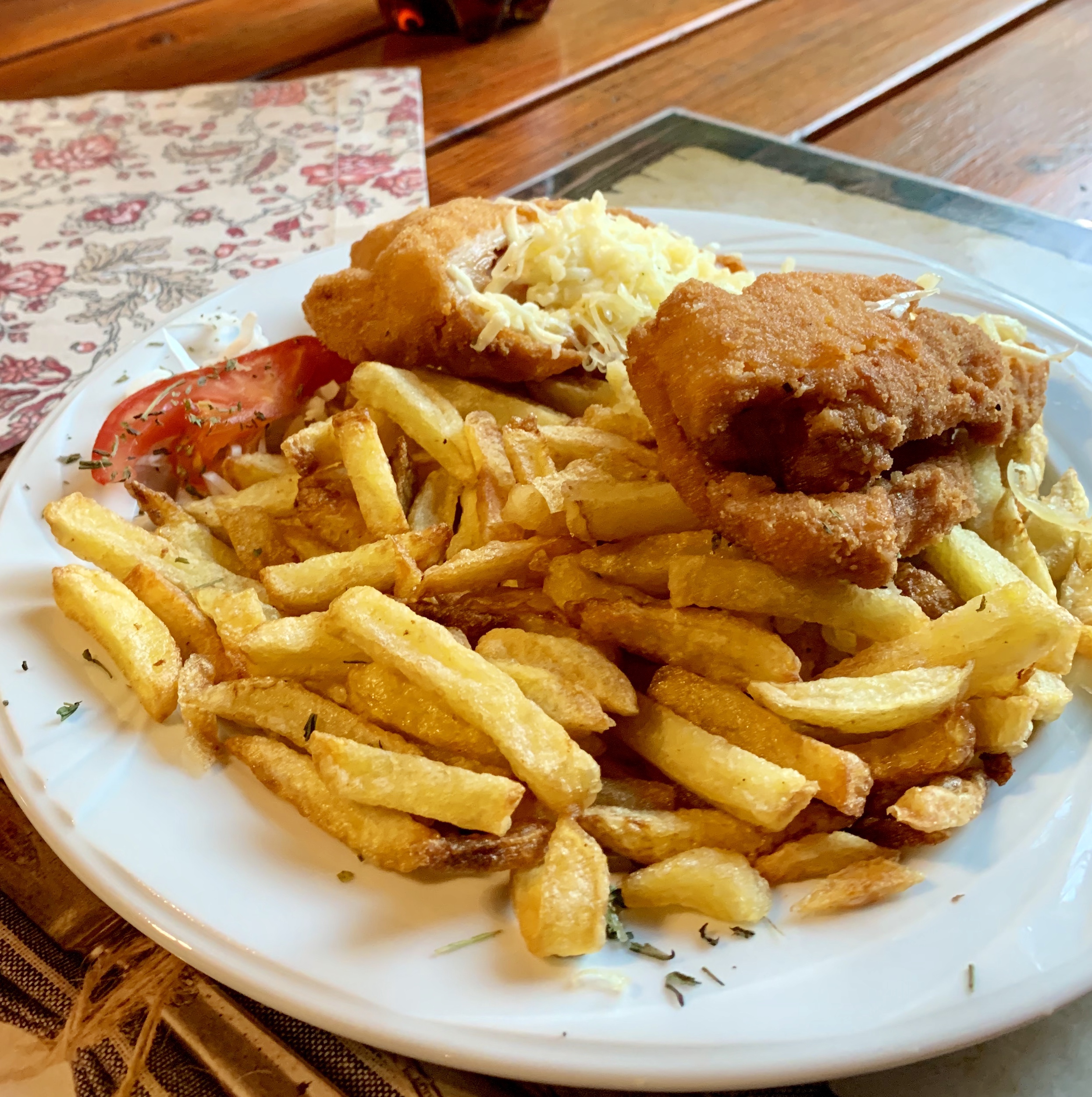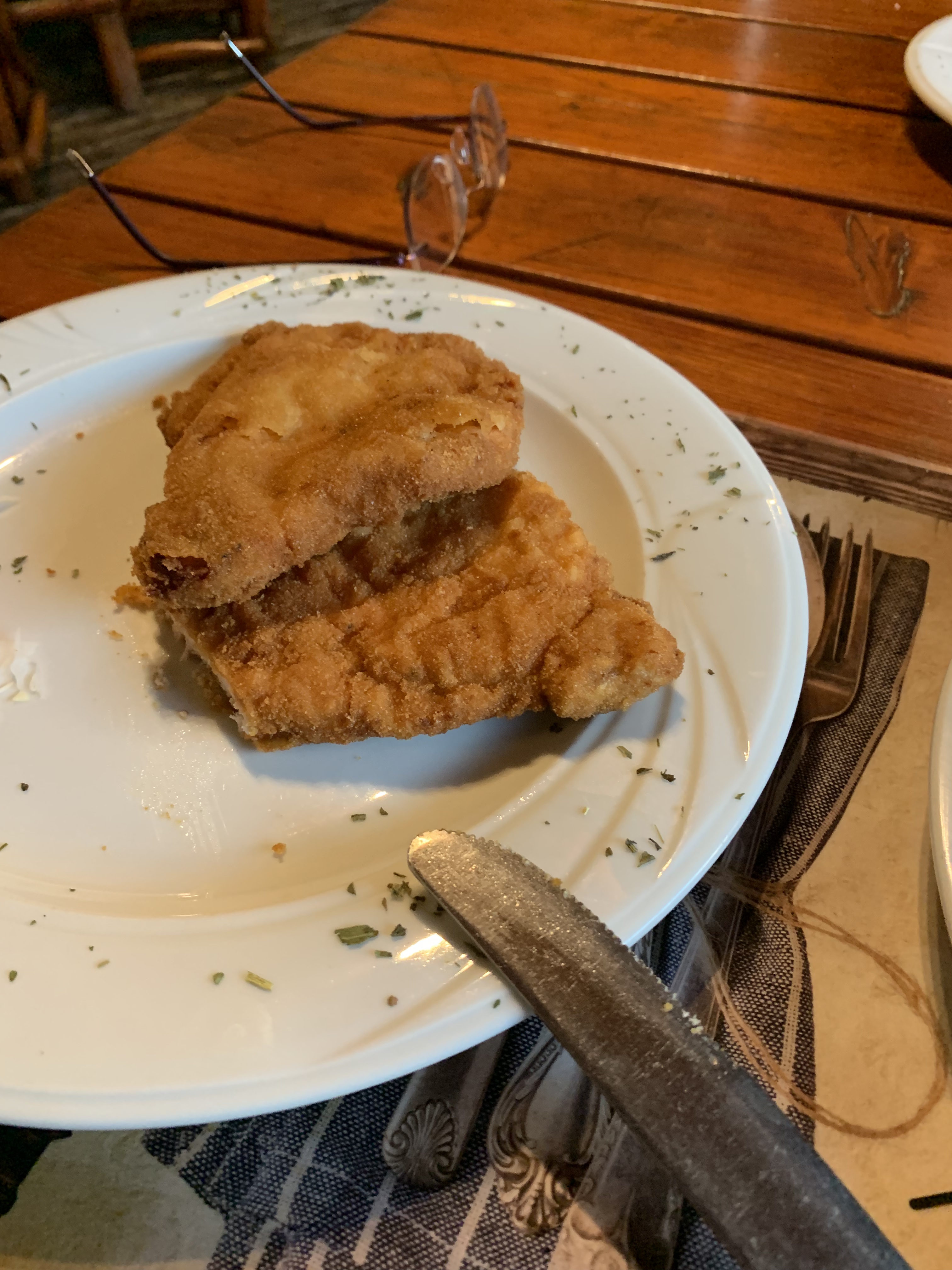 Eu am comandat mămăliga cu brânza și smântâna (după ce am gustat, am realizat ca mi-au dat brânza de burduf 👍) și un șnițel (dar mi-au pus 2, ca sa fie…)