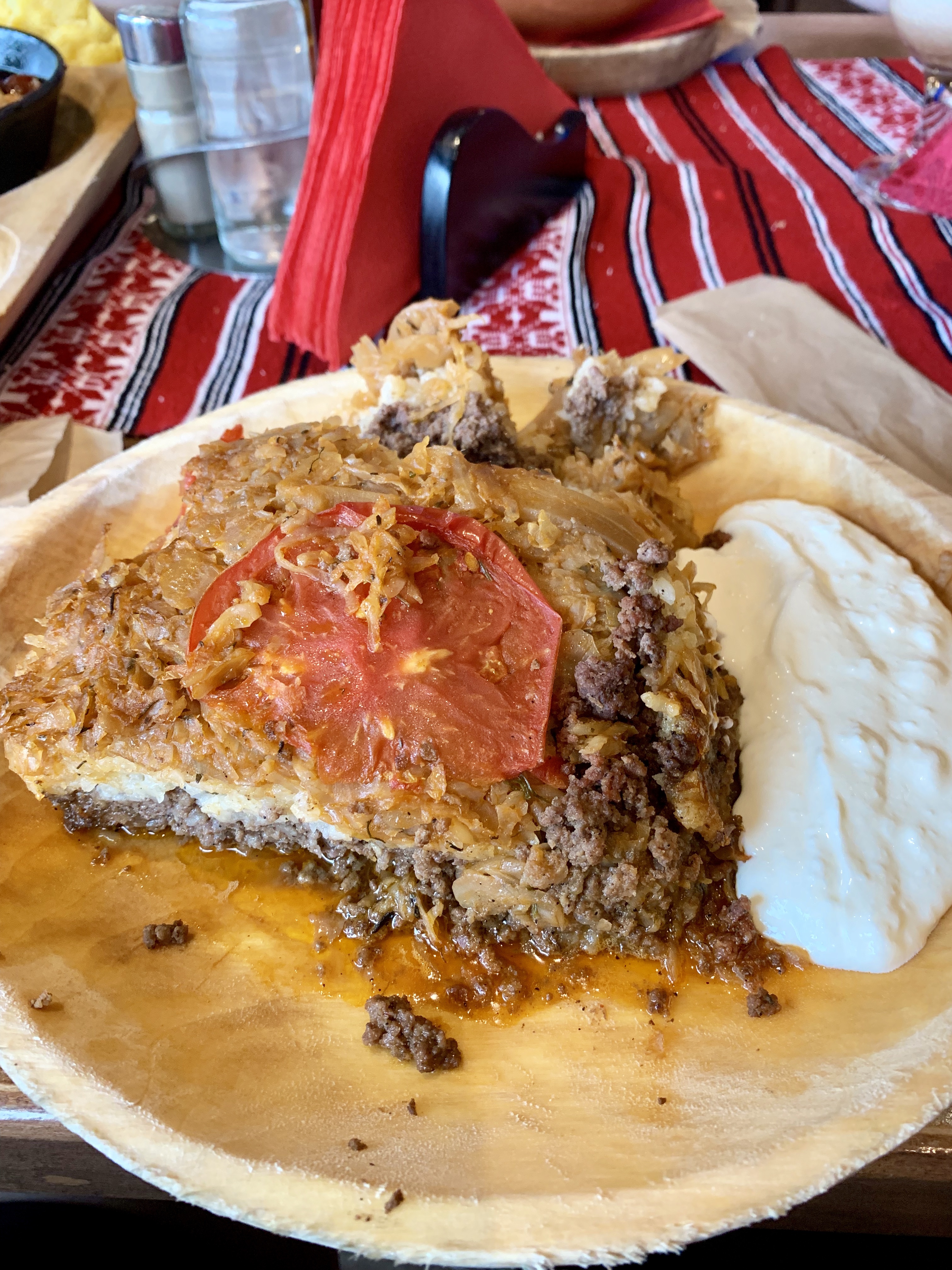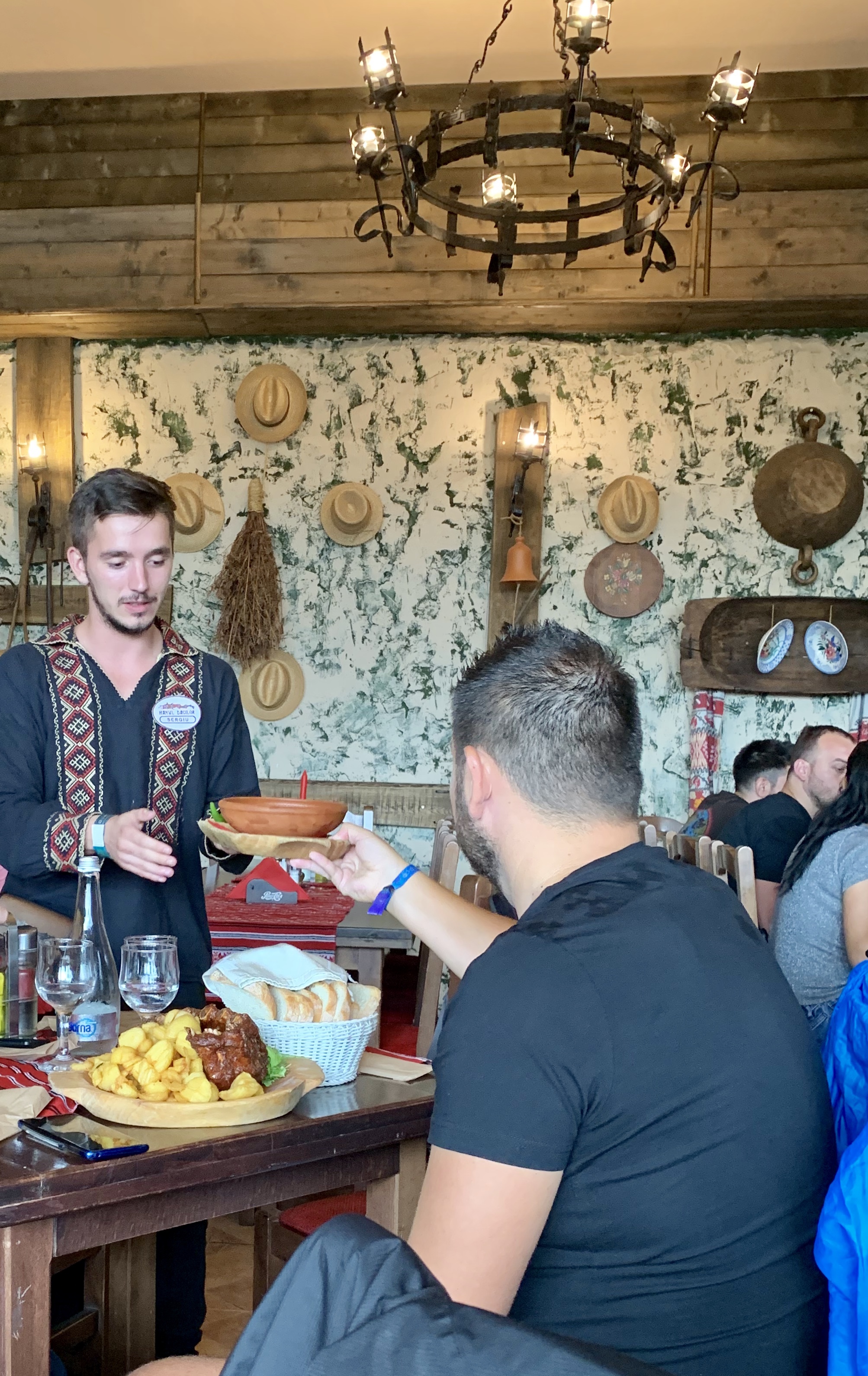 Am poposit la hanul “Casa dacilor” de lângă Iulius Mall. Unde am fost întâmpinați de niște vajnici urmașii ai dacilor liberi îmbrăcați in costume naționale. Restaurantul este foarte ok, mâncarea buna, dar iarăși porțiile au fost enorme.