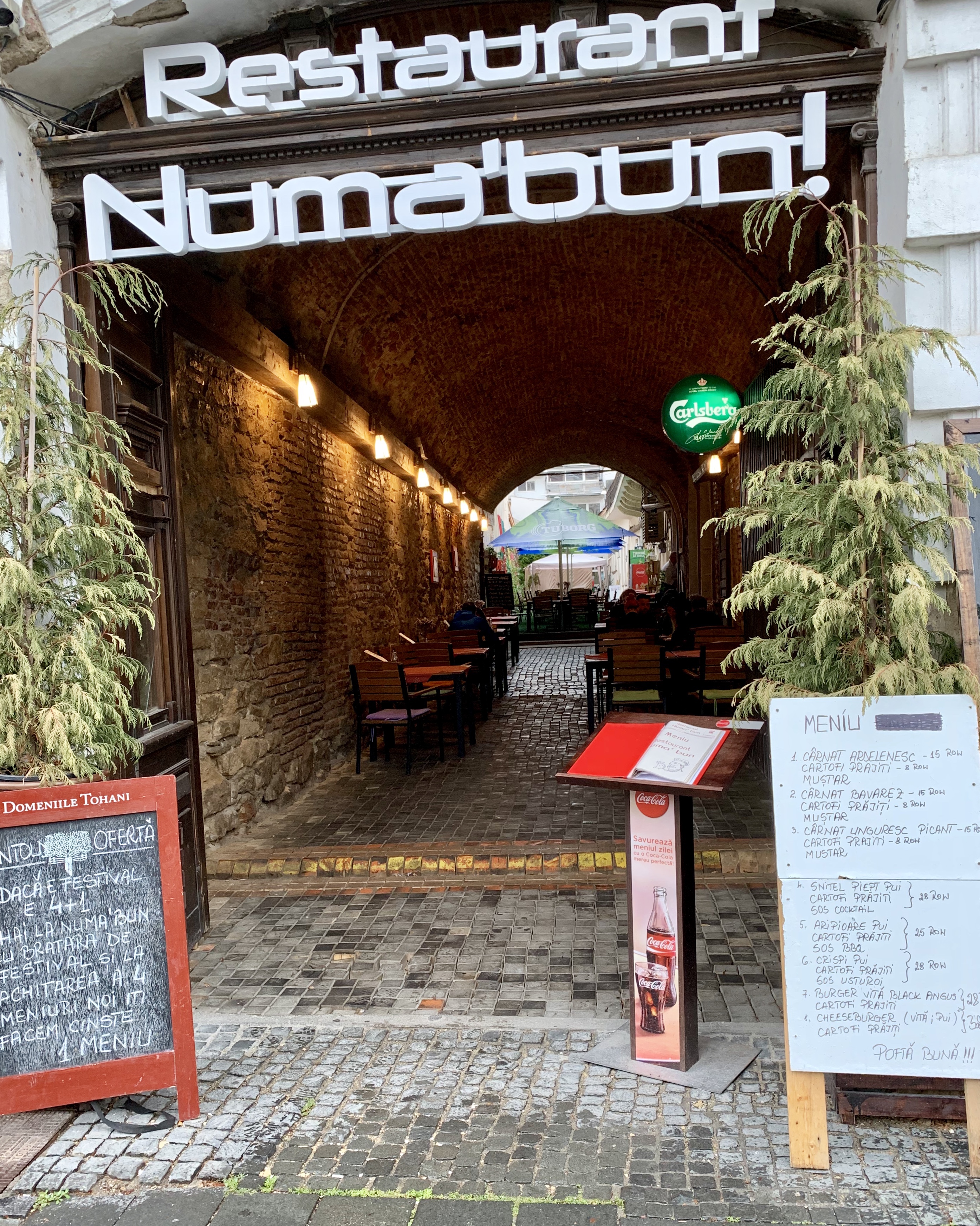 După ce am rezolvat problema asta, m-am întors la hotel, i-am trezit pe cei doi colegi de aventura urbană și am ținut un scurt consiliu de familie: având in vedere ca iar ploua torențial, hai sa “merem” la Cluj și la Salina Turda. Măcar la Salina vom fi in interior… Zi și făcut, am pornit, sarind peste micul dejun, la Cluj, prima destinație fiind un restaurant acolo. 😏