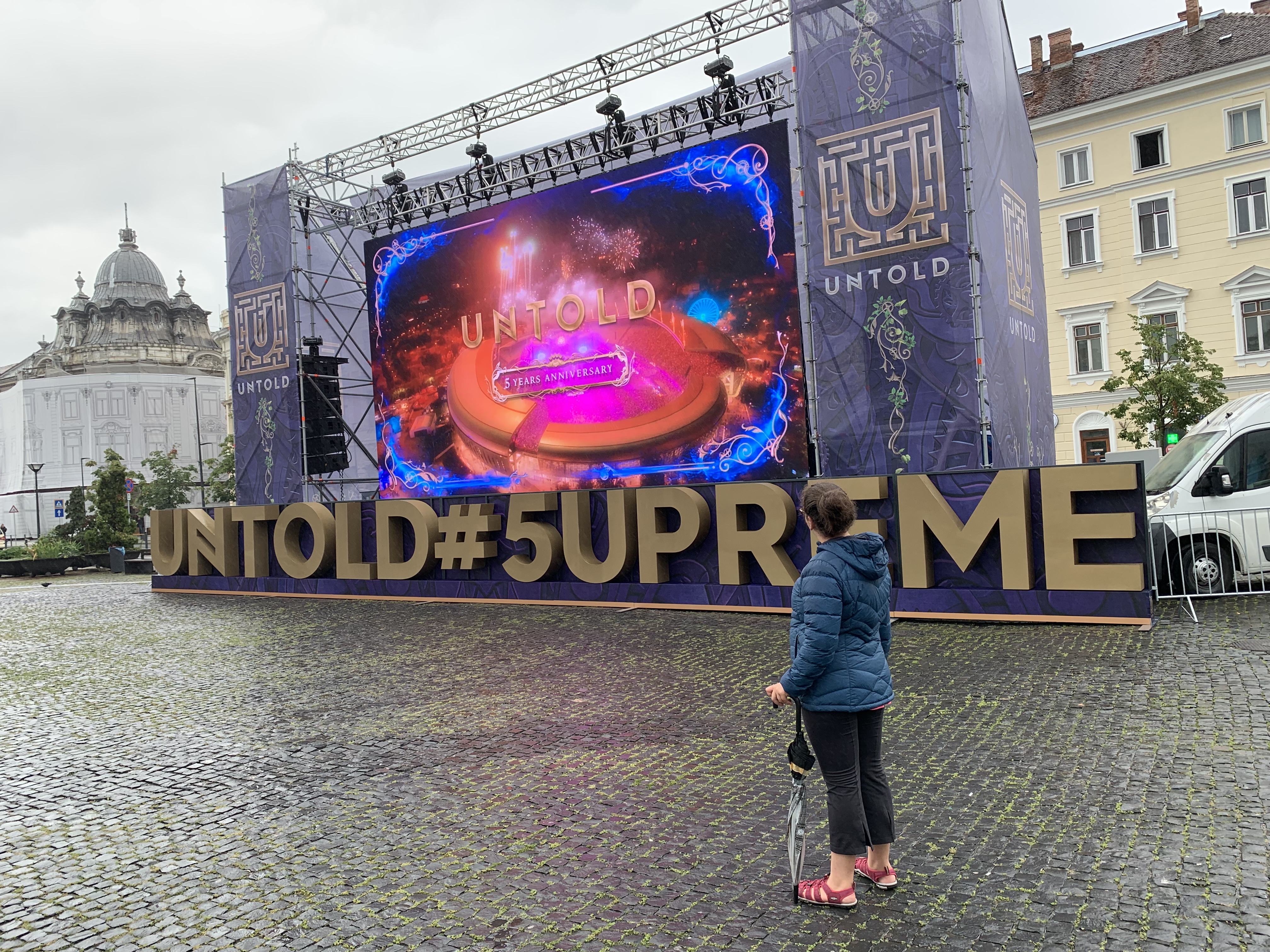 Piața Avram Iancu unde are loc acum festivalul Untold, un concert de vara la care participa… niște iluștri necunoscuți mie (in afara de Robbie Williams).