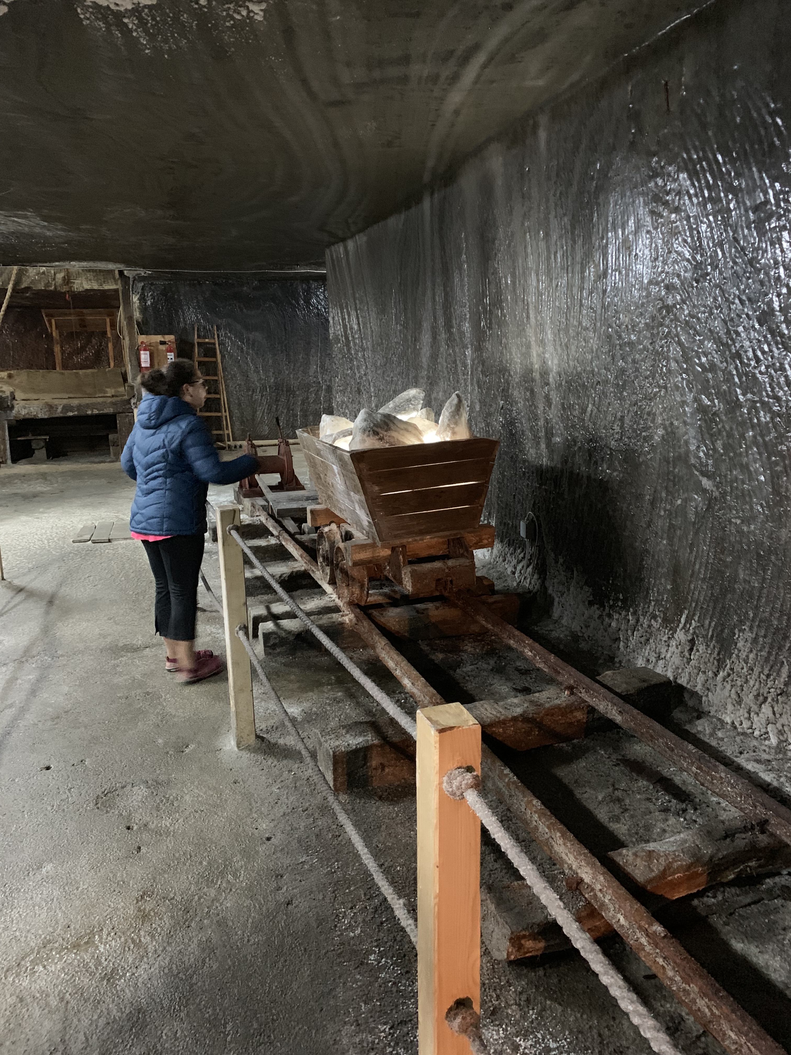 Într-una din aceste galerii am putut vedea utilajele medievale de extracție, care s-au conservat foarte bine și sunt unice în Europa.