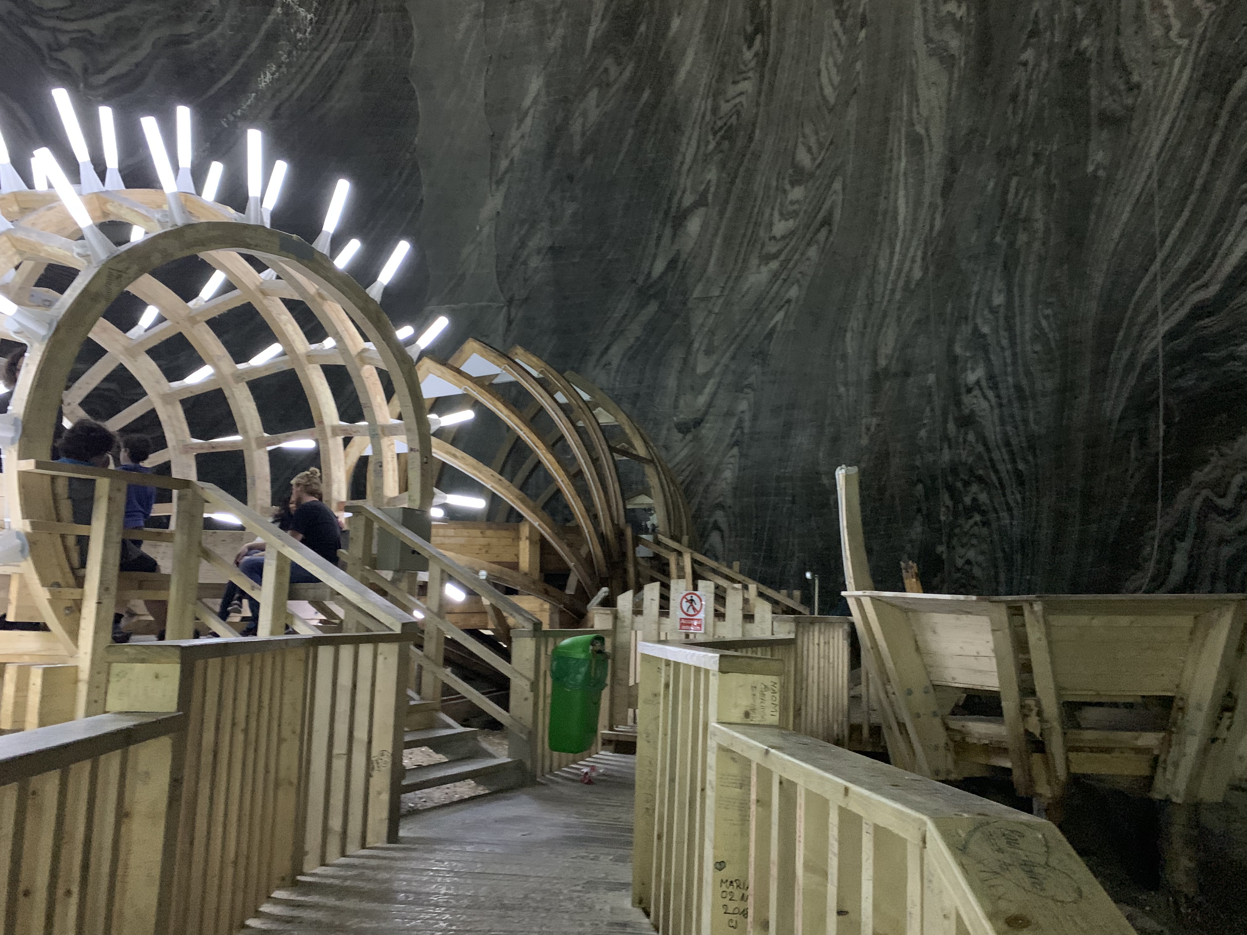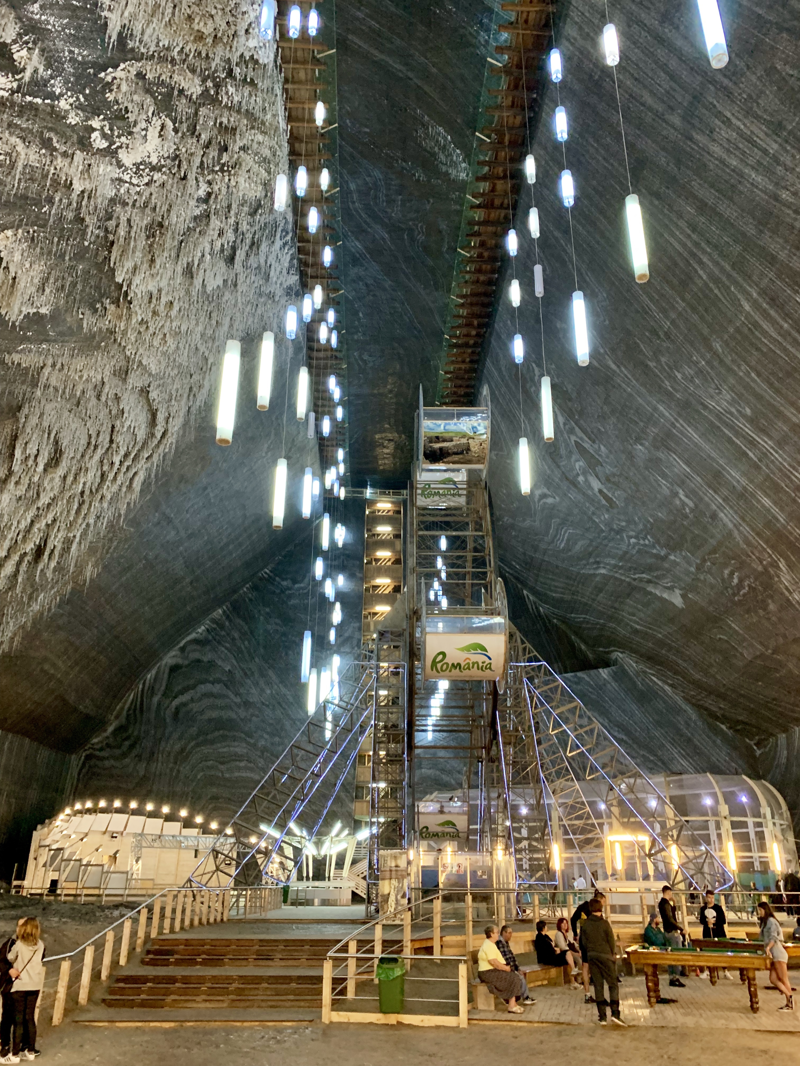Cand am iesit din galeria principala si am ajuns in salina propriu zisa, ni s-a desfasurat in fata ochilor un platou intreg, pe care se afla roata, amfiteatrul, terenul de sport, zona de diverstisment si magazinul de suveniruri.