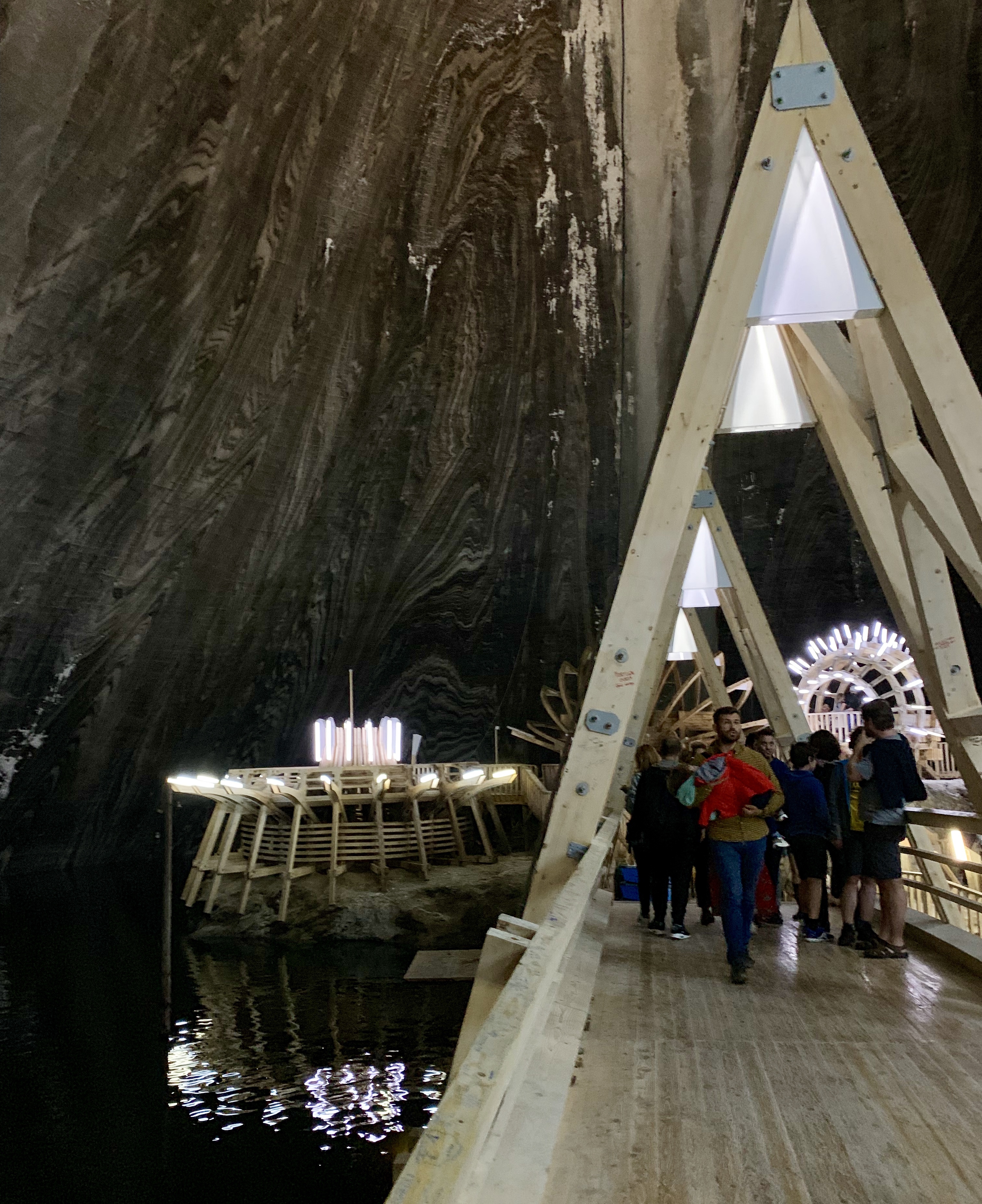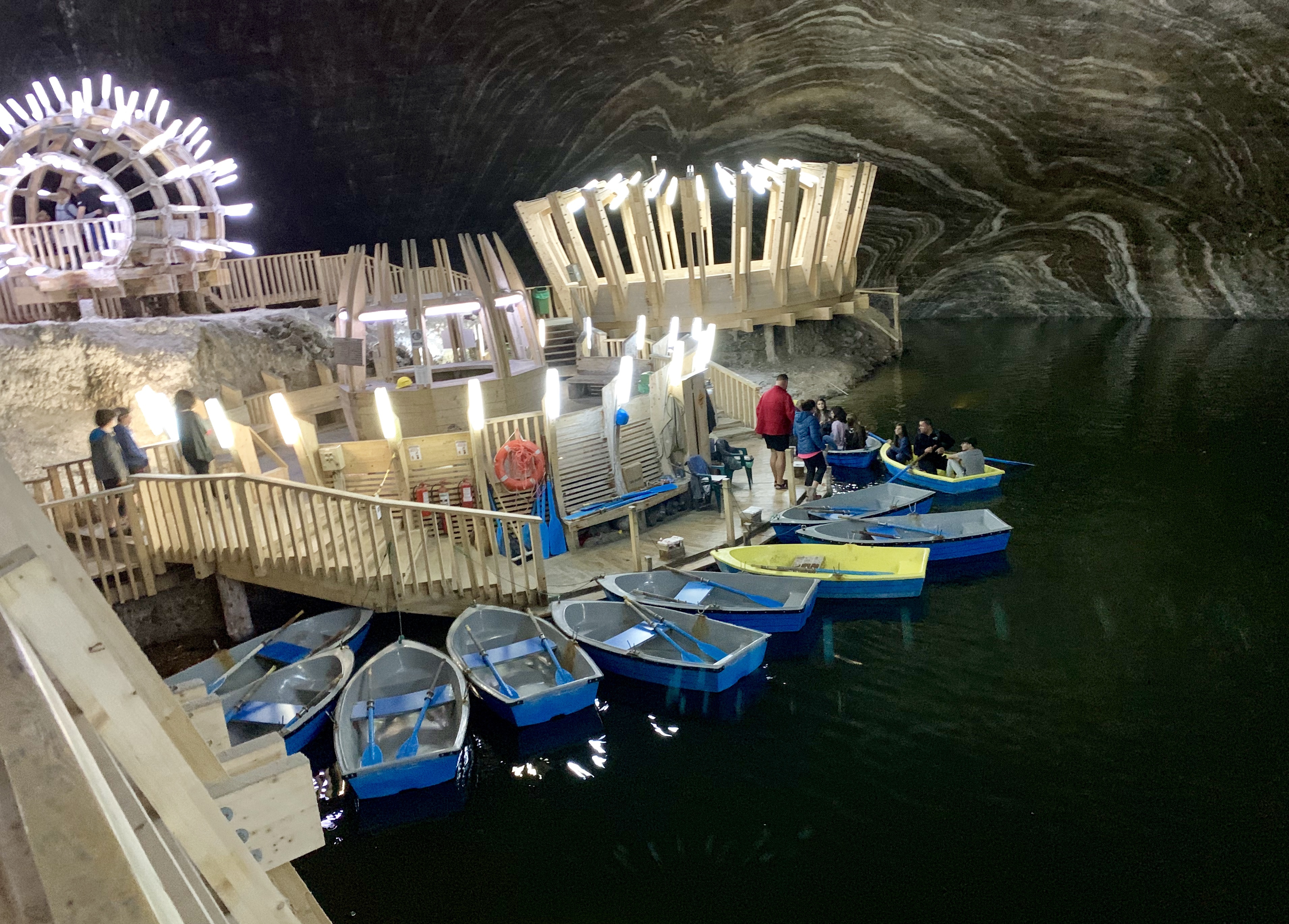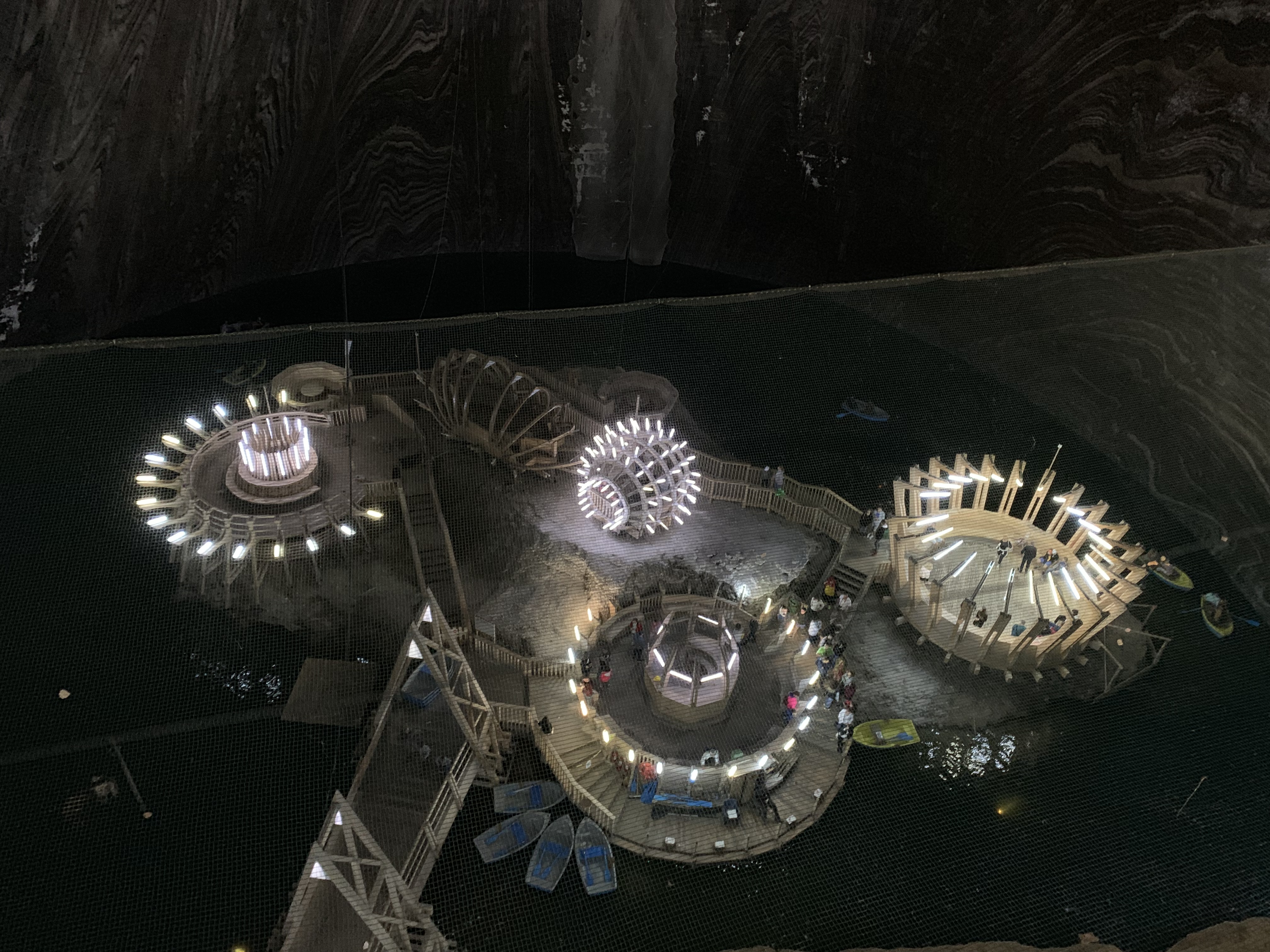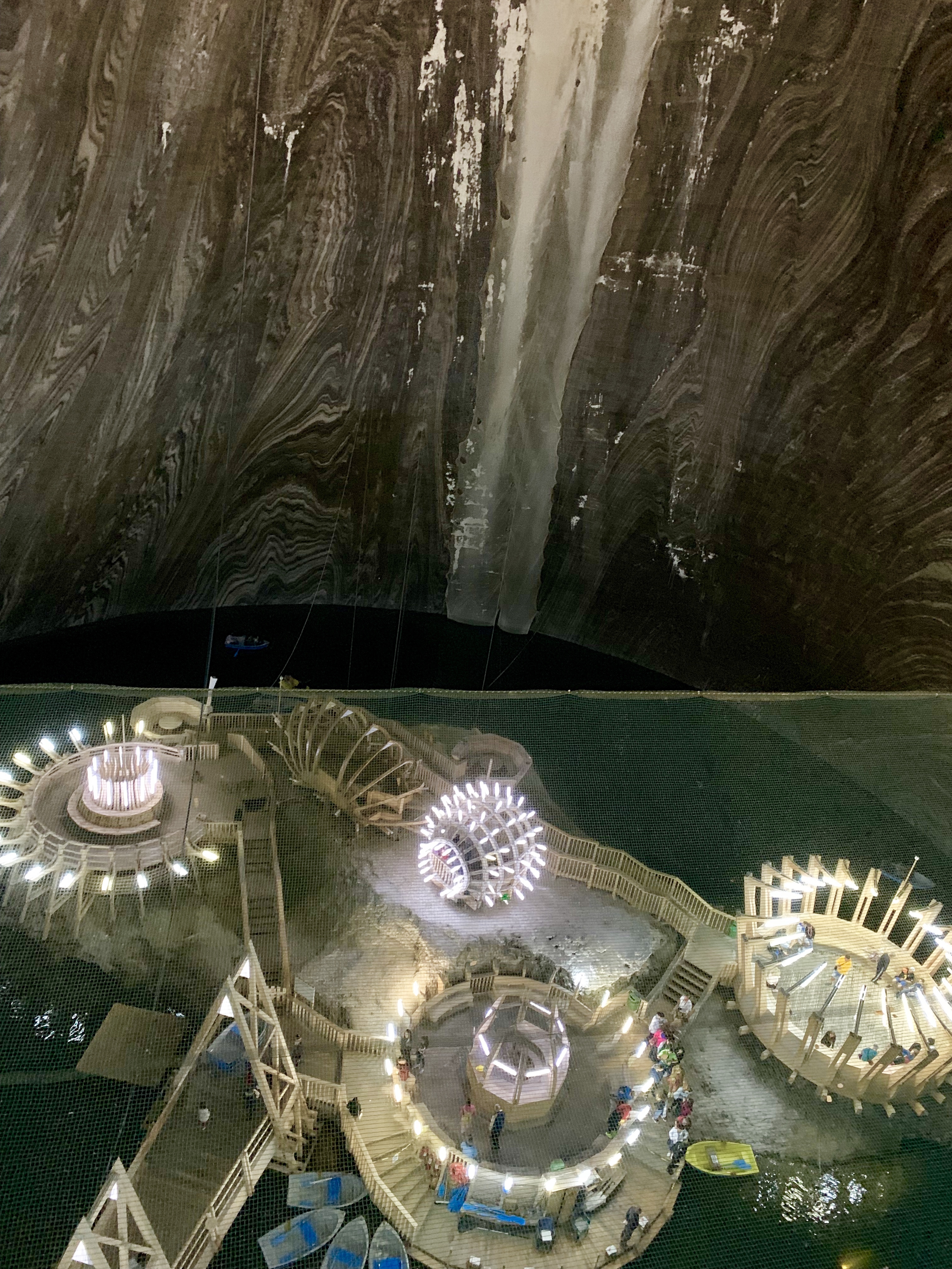 Lacul este o alta zona superba din mina, pe care o vezi de sus, de la nivelul pasarelei superioare, de la urcarea in lift. Designul este iesit din comun: ai spune ca o nava extraterestra a aterizat in lacul din muntele de sare.