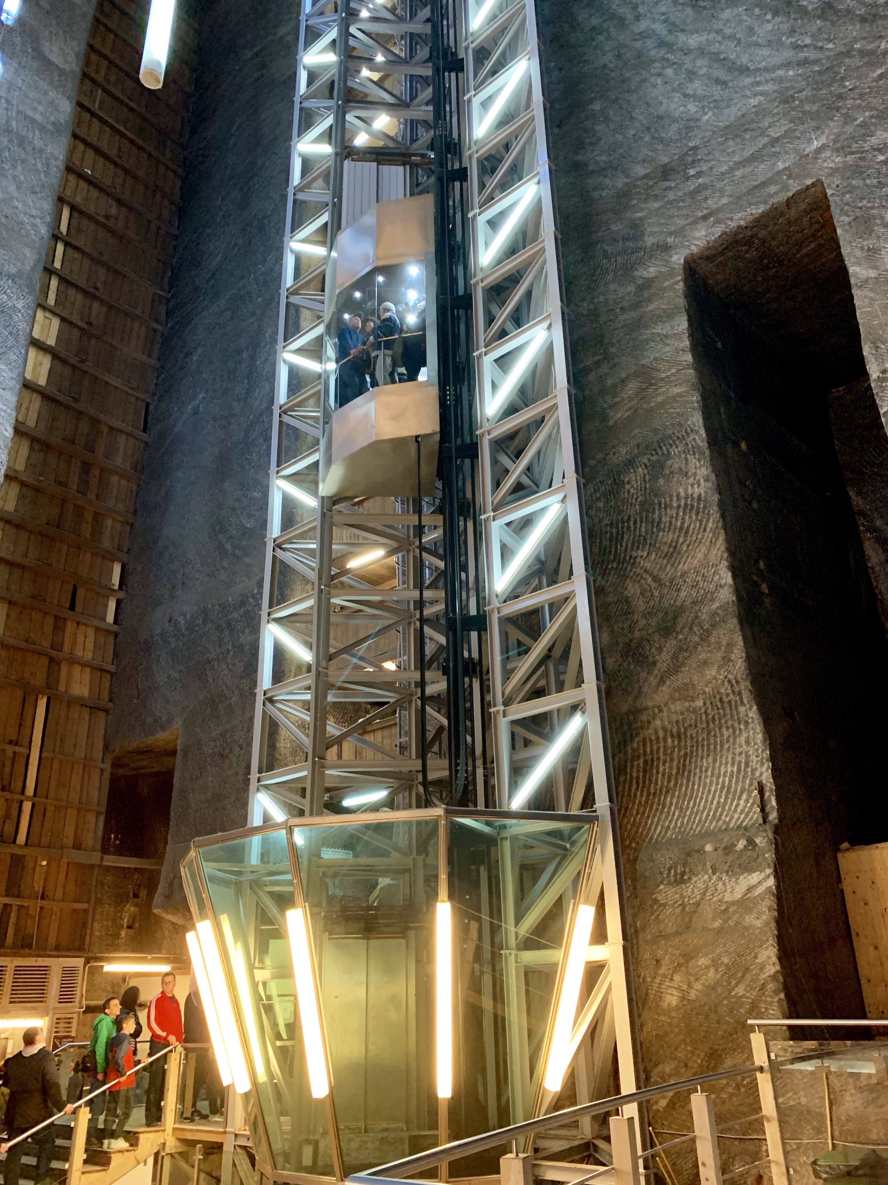 Ca sa ajungem la ele insa, se poate merge fie cu liftul, fie pe scari, pentru o coborare de trei minute. Pentru panorama, eu și Anna am luat liftul: este din sticla si am putut admira tot ce este in jur, de la mare inaltime.