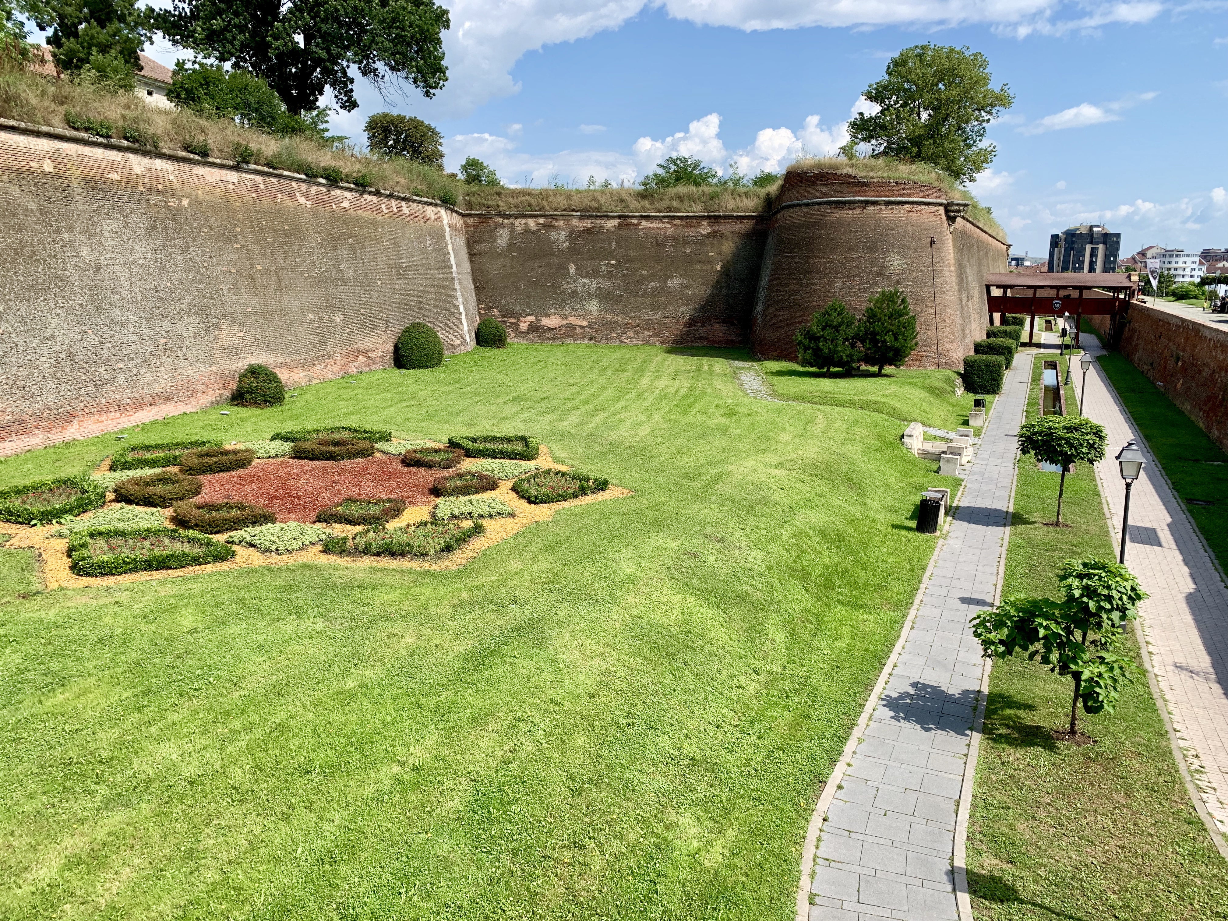 Întregul edificiu este înconjurat de două rânduri de şanţuri de apărare care au între ele mai multe valuri masive de pământ amplasate în pantă tot în ideea îngreunării cât mai mult posibile a oricărui asalt al armatelor inamice.