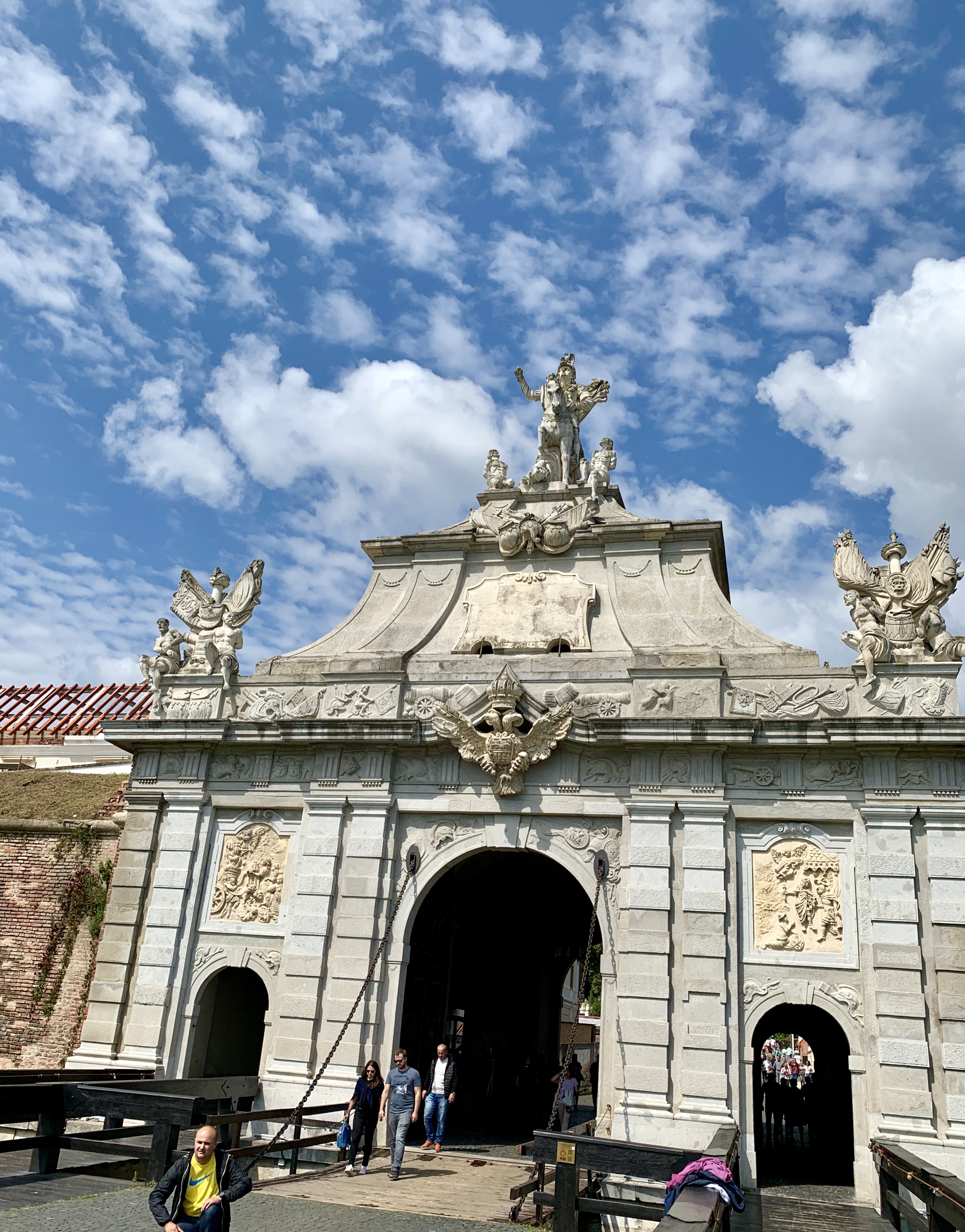 Obiectivul nostru de vizitat ieri a fost Cetatea Alba Iulia (sau, cum era numita de austrieci, Alba Carolina – în cinstea Împăratului lor, Carol al VI-lea). Ridicată între anii 1715-1738, cetatea este cea mai reprezentativă şi importanta fortificaţie de tip „Vauban” din România (adică are un plan heptagonal, care deserveşte un număr de 7 bastioane şi se întinde pe o suprafaţă de 70 de hectare).