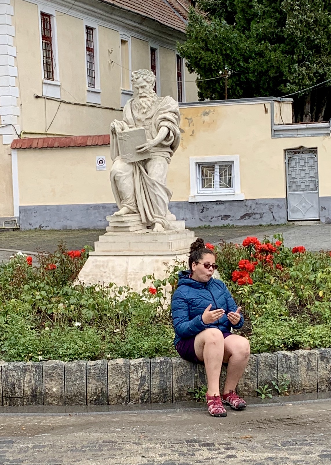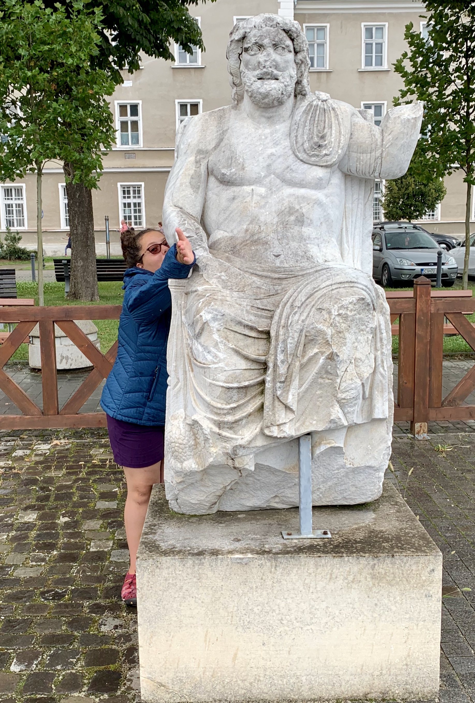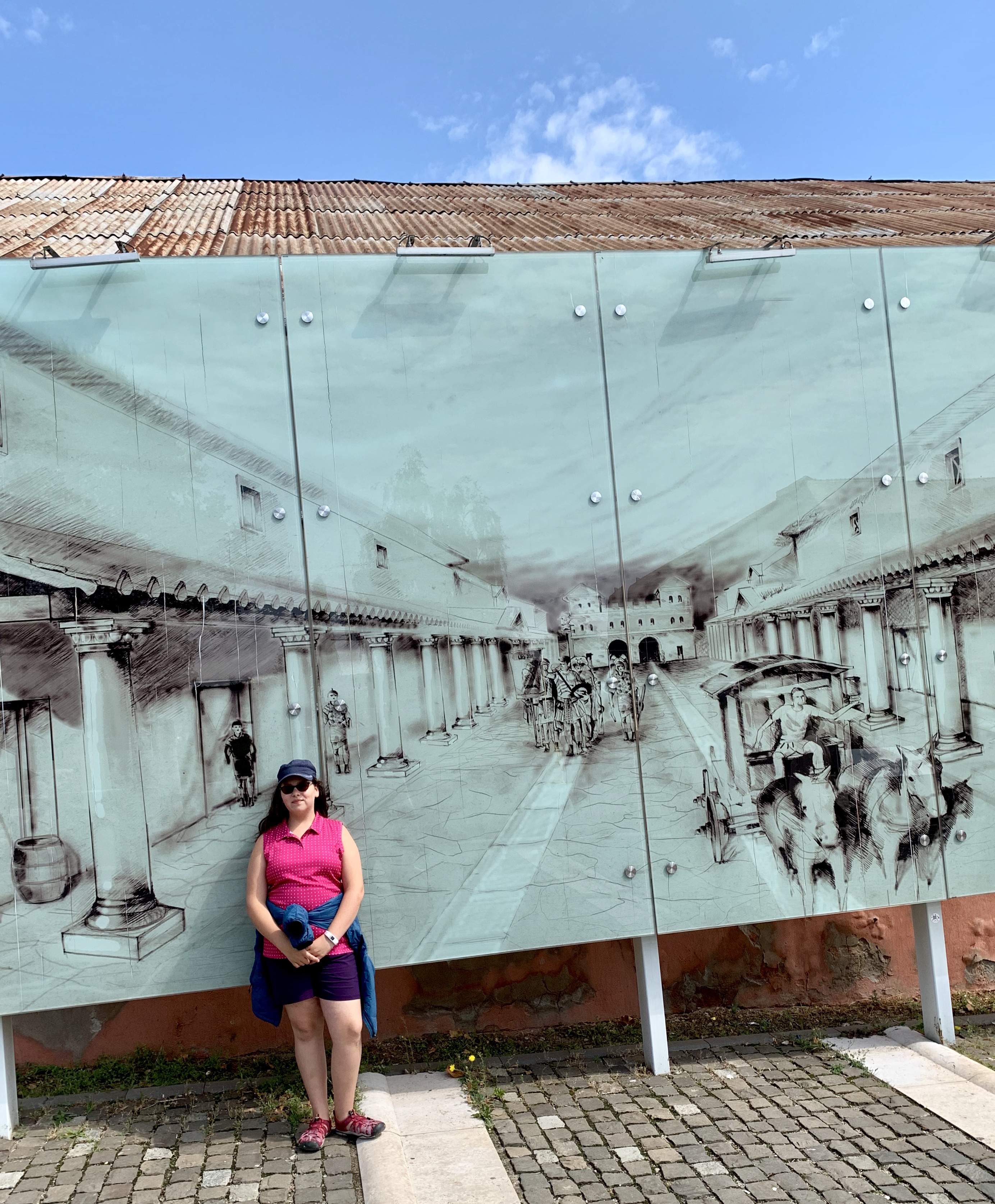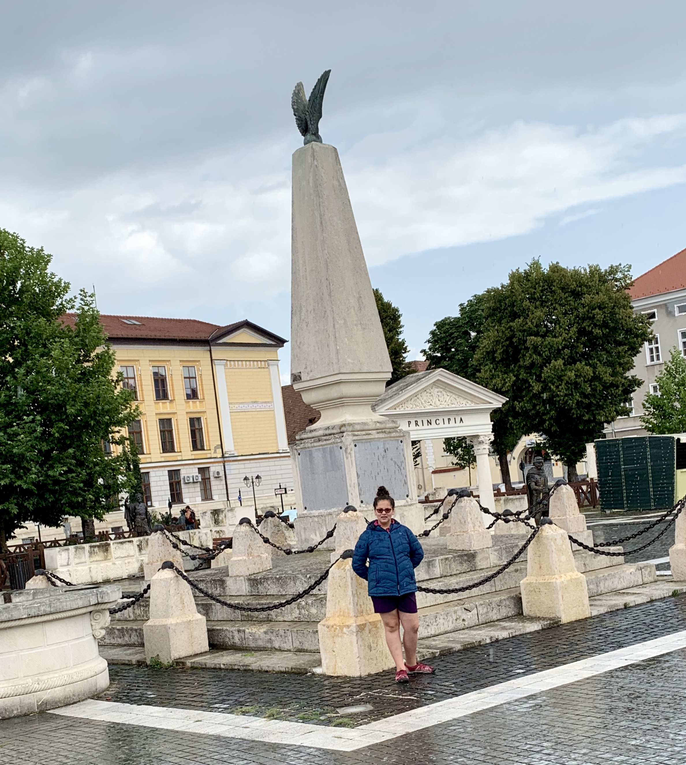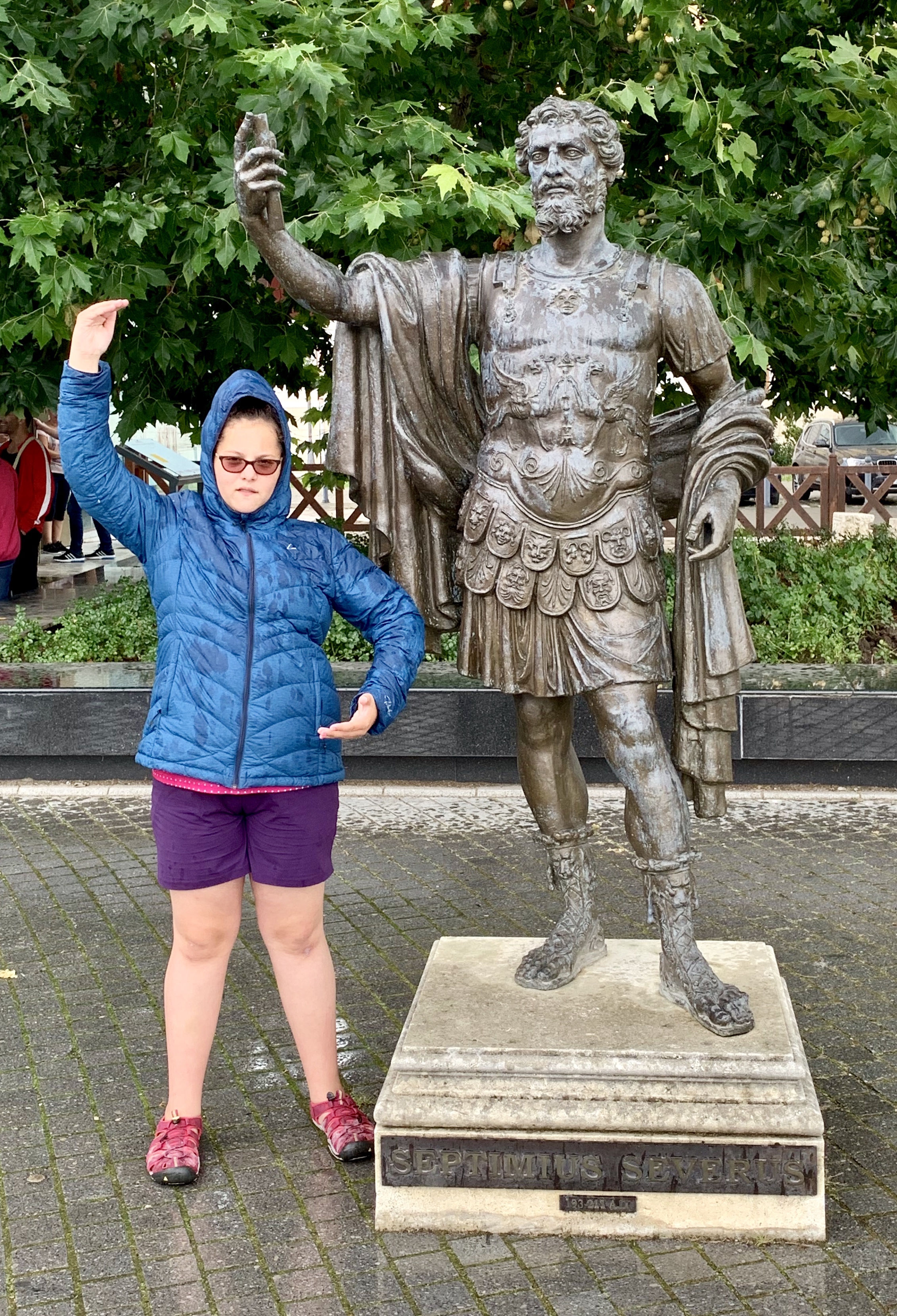Bravând ploaia, am continuat sa vizitam ruinele și statuile vechiului castru roman.