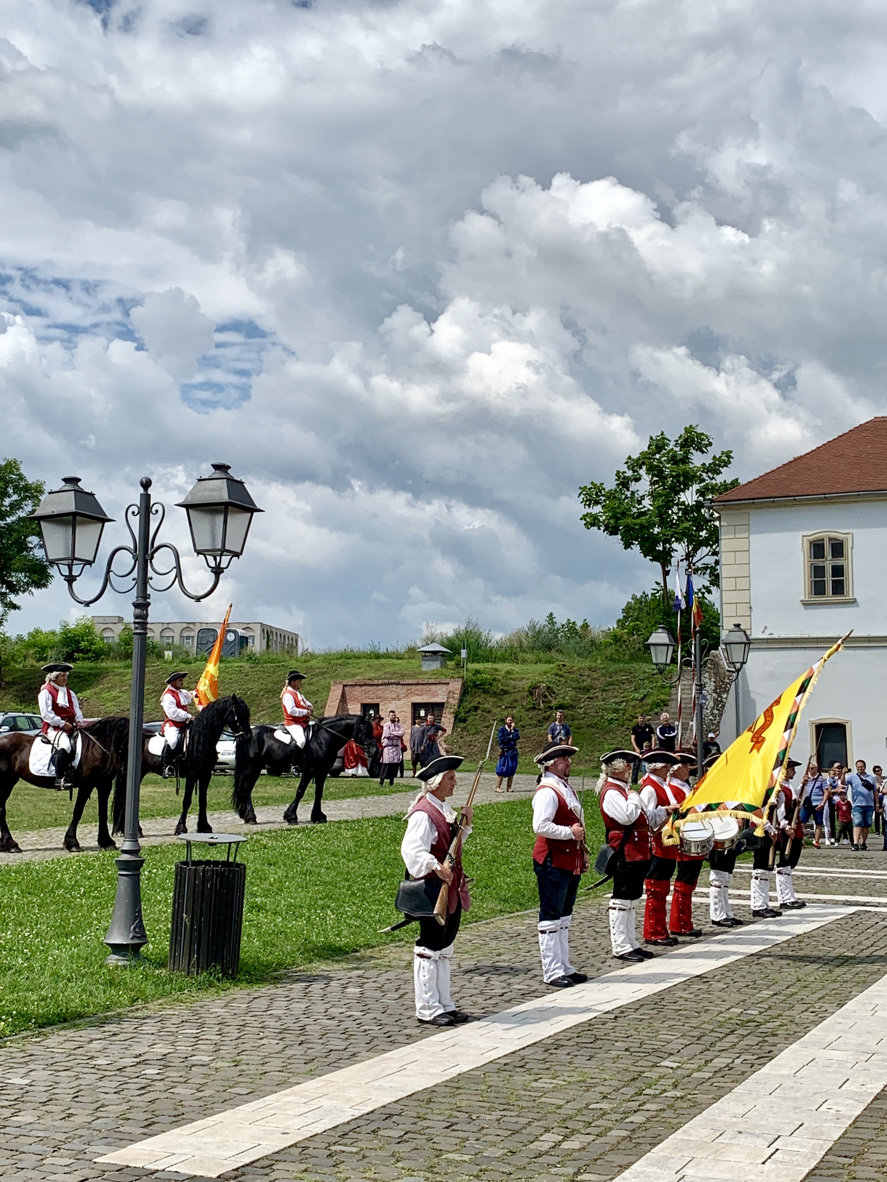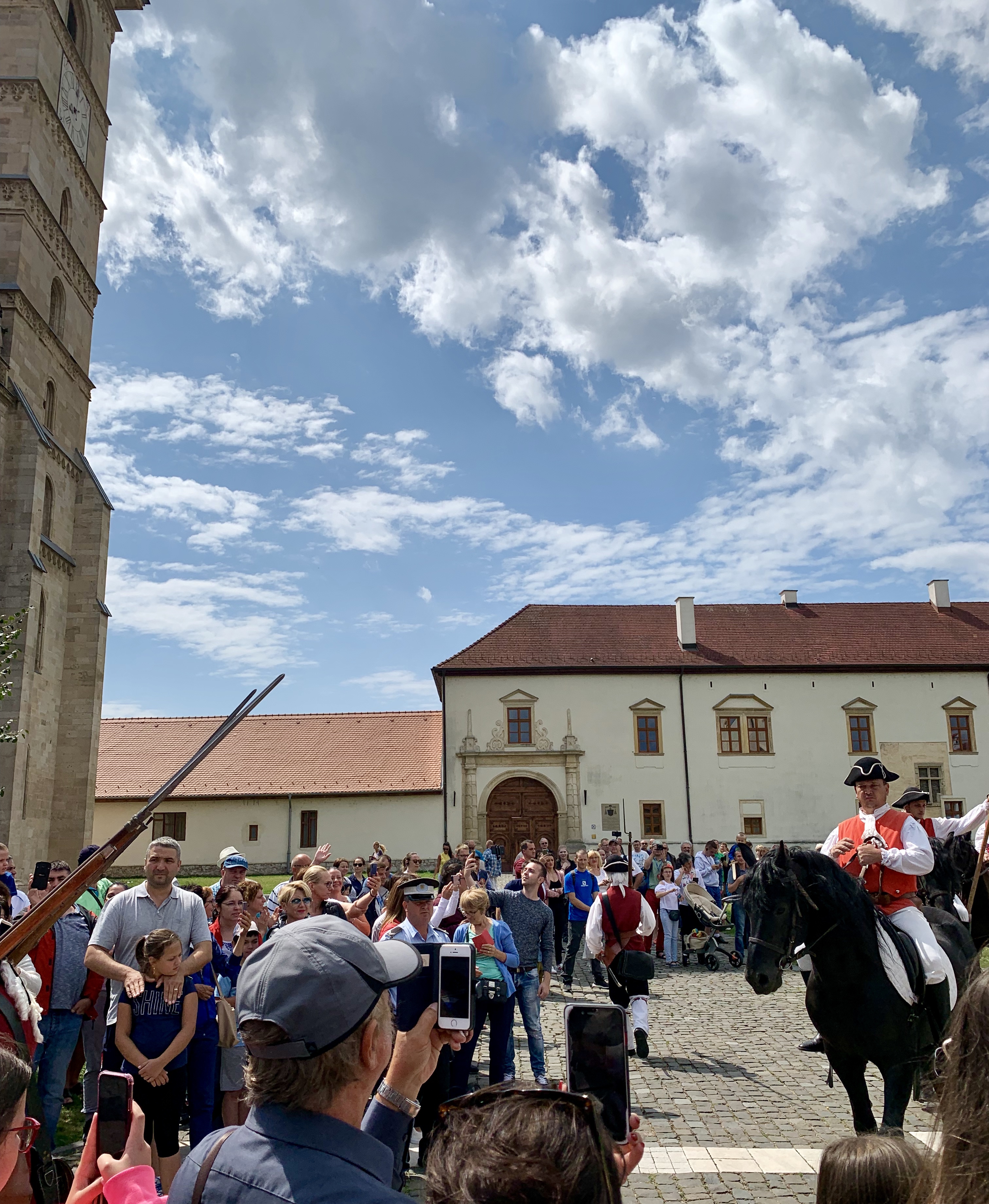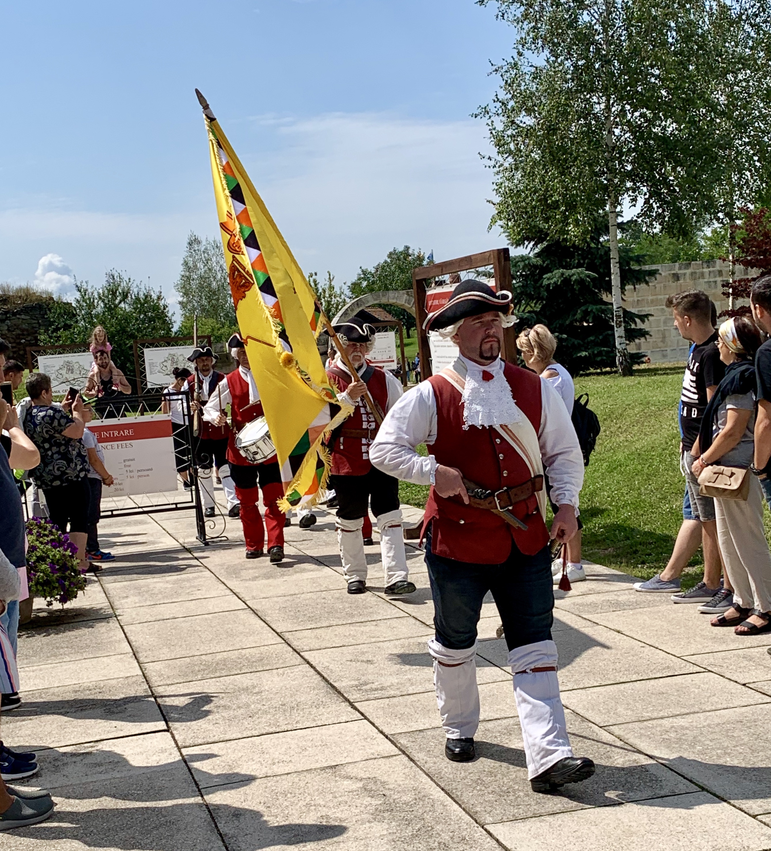 Cum am ajuns acolo in jur de ora 11:30 dimineața, am avut norocul sa putem vedea spectacolul de schimbare a gărzii Cetăţii. Se coboară de la Poarta a IV-a spre Poarta a III-a (sau se urcă în fața Catedralei romano-catolice), unde are loc schimbarea gărzii.