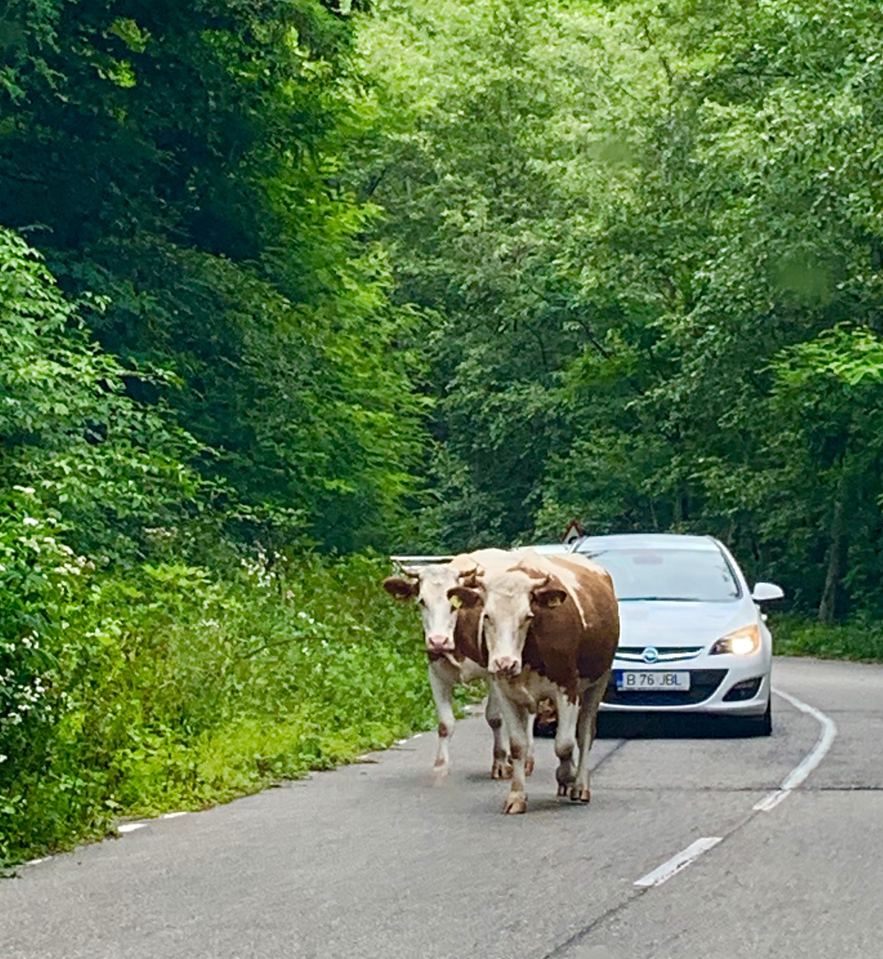 In apropierea zonei de parcare, ne-am întâlnit cu niște văcuțe care se plimbau agale pe sosea.