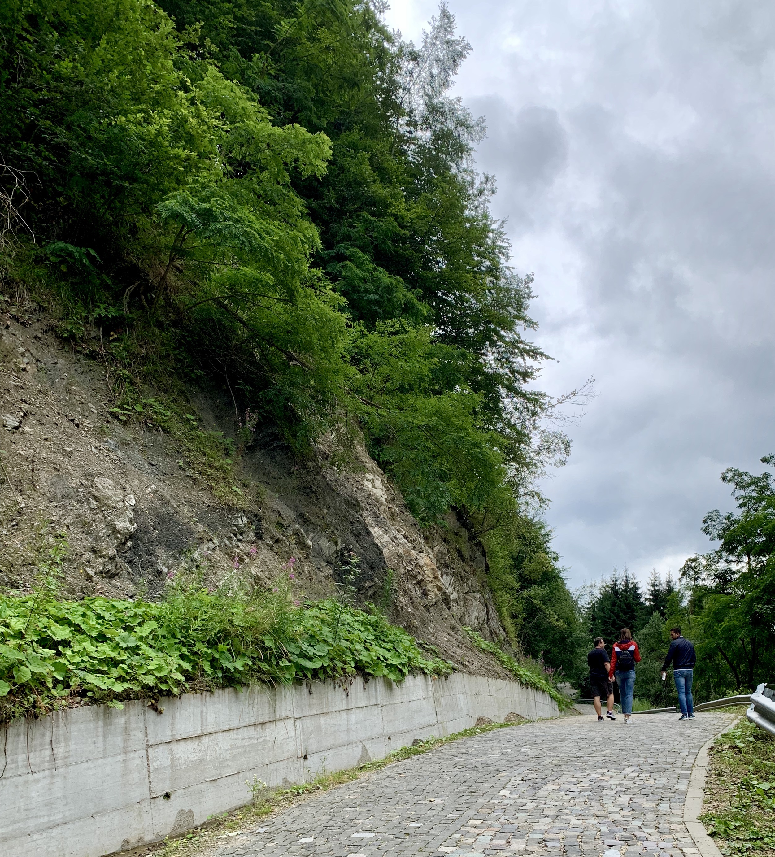 Ajunși in parcarea de la Sarmizegetusa, ploaia s-a întețit; după care a urmat un episod de grindina. Noi, ținând mortiș sa vedem ruinele fostei capitale dacice, am urcat pana la jumătatea drumului care duce la ruine (2 km).