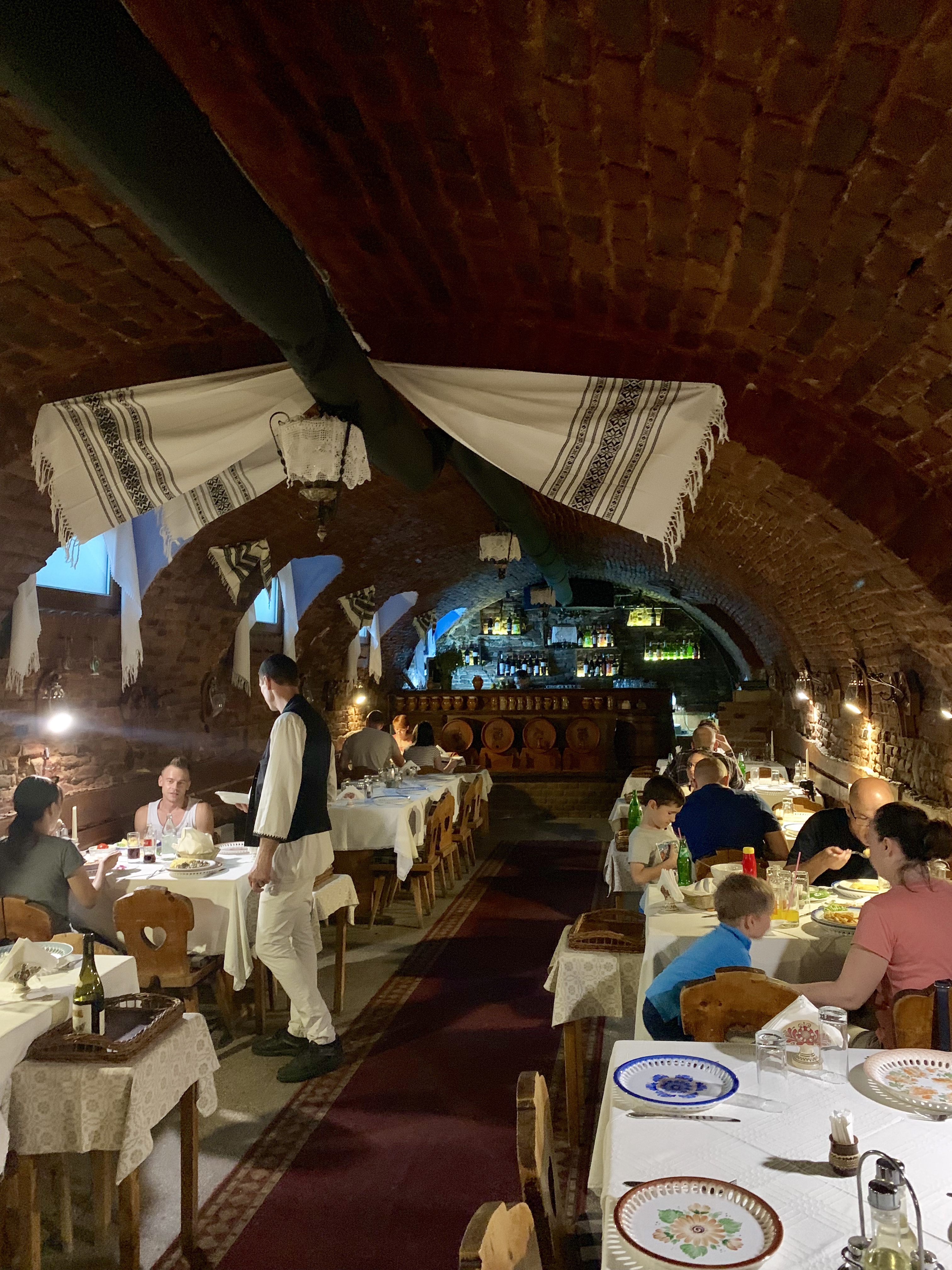 Pentru masa de seara am poposit la restaurantul Crama Sibiul Vechi, loc recomandat pe TripAdvisor de foarte mulți turiști. Cum ii spune și numele, este situat intr-o fosta crama. Are 10-12 mese şi primeşte în jur de 50 de oameni.