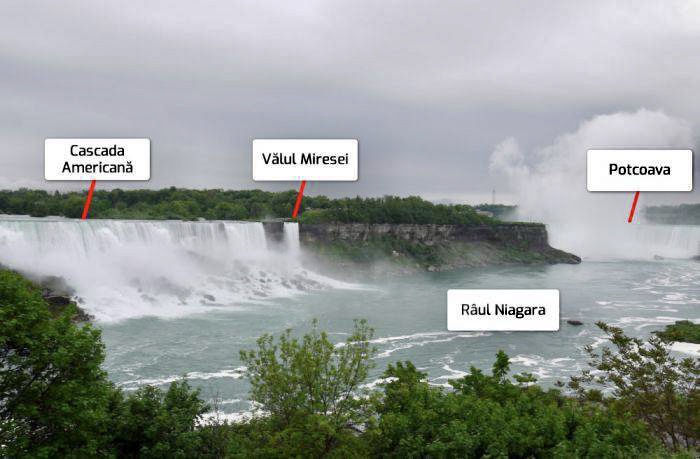Cascada Niagara este un ansamblu format din trei căderi de apă: American Falls (Cascada americană), Bridal Veil Falls (cascada Vălul Miresii) pe teritoriul Statelor Unite și Horseshoe Falls (cascada Potcoavă) pe teritoriul Canadei.