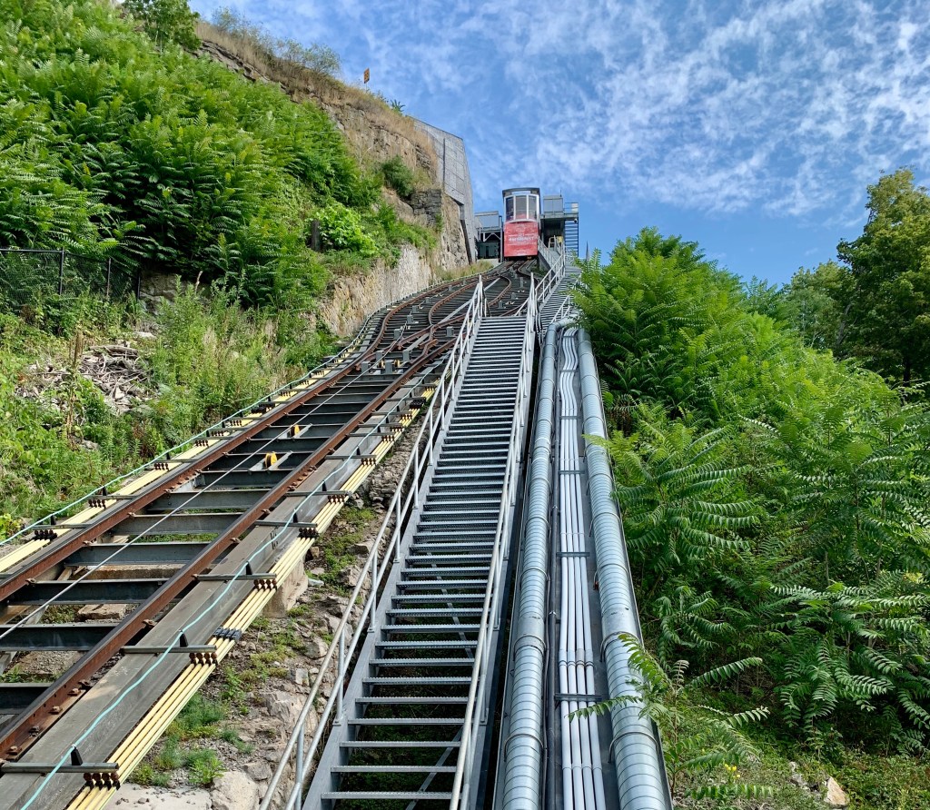 Am înțeles ca de un an și ceva au introdus un funicular cu care se coboară la vaporaș. Dacă tot eram acolo, am zis sa profitam de ocazie sa mergem cu el.
