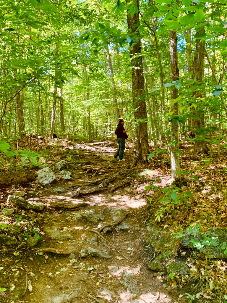 După ce am văzut tot ce era de văzut acolo, ne-am îndreptat catre ruinele Abbey (mănăstire). Drumul urca și tot urca prin pădure, plin de pietre și rădăcini de copaci la tot pasul, dar e fain. Natura este superba, aerul este curat, iar veverițe peste tot. Personal, mi-a fost un pic teama pentru ca in perioada asta a anului urșii negri din parc sunt pe cale de a hiberna, dar nu chiar… Sunt încă functionali, si numai gândul sa ne iasă unul in cale îmi ridica adrenalina la cote maxime. Din fericire (pentru mine; George a detestat asta), drumul in acest sector al parcului Gatineau este unul foarte umblat, intersectându-ne cu mulți nebuni ca noi. Chestia asta pe mine m-a liniștit; nu eram singuri și neliniștiti in pădure.