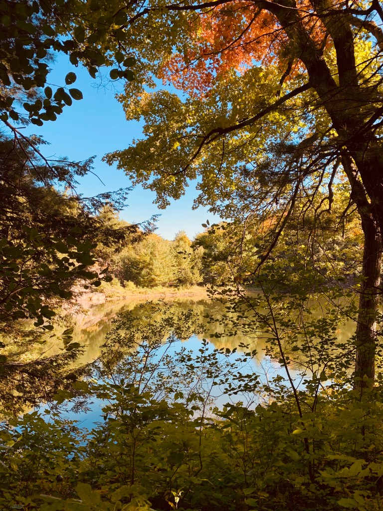 După nu știu cati alți zeci de metri străbătuți prin flora și fauna canadiana, dar care mie mi s-au părut kilometri din cauza panicii ca ne-am pierdut acolo, am ajuns la un lac. Mulvihill Lake pe al sau nume.