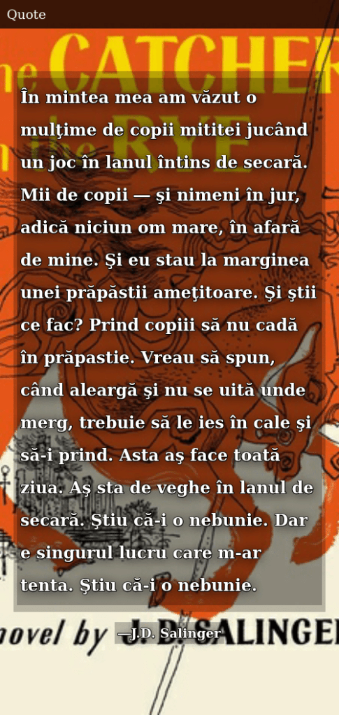 Am răbdare cu copiii. Un fragment din cartea lui Salinger, „De veghe în lanul de secară” reda foarte bine ceea ce simt de fiecare data când sunt în preajma lor: