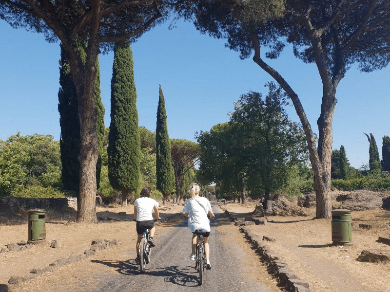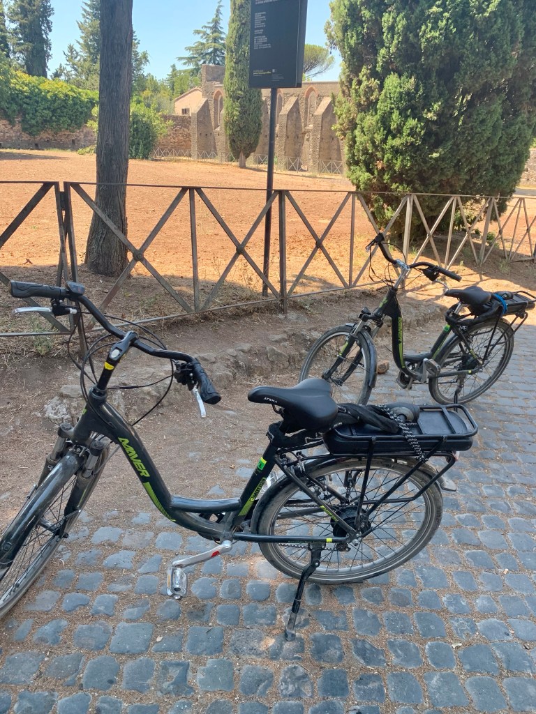 Fascinant este ca pe Via Appia se poate merge și astăzi: pe aceleași pietrele pe care au pășit vechii romani. Si chiar o plimbare cu bicicleta… sau pe lângă bicicleta, in cazul meu. 😁