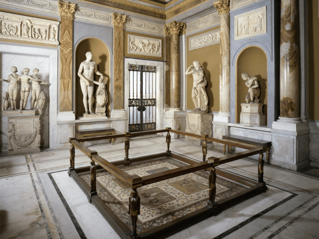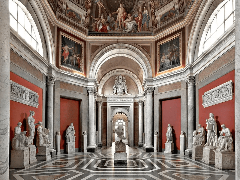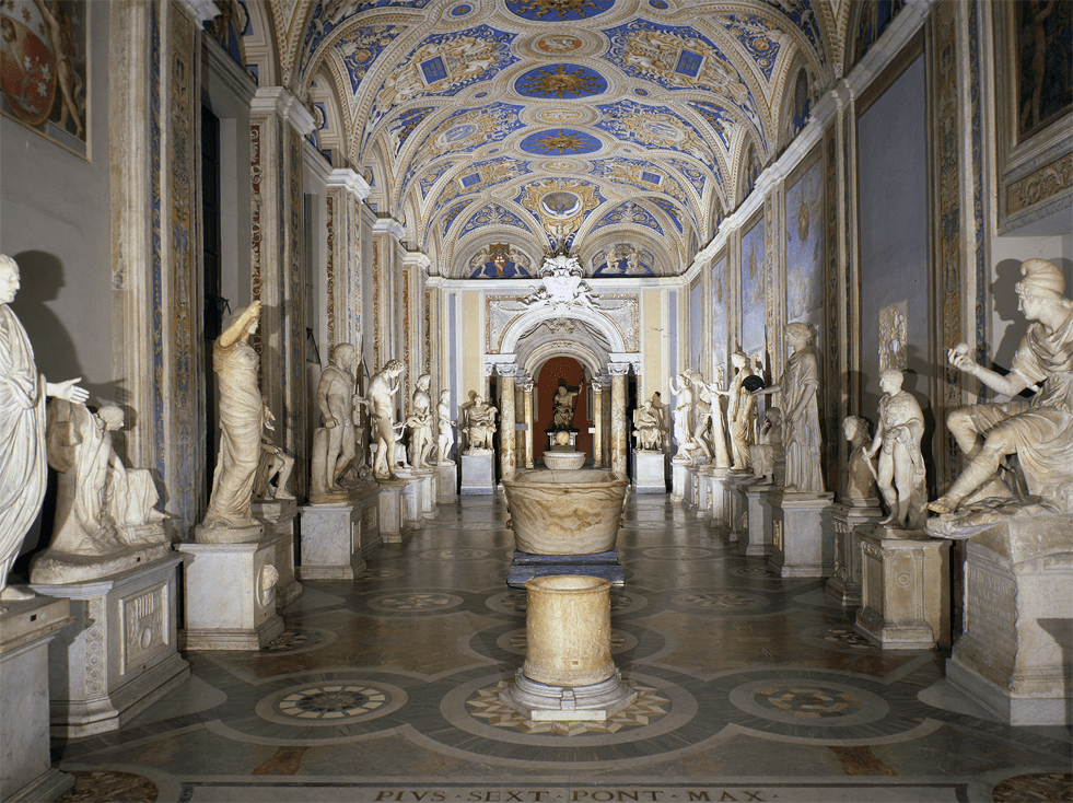 Muzeul Pio Clementino este situat într-una dintre clădirile de pe marginea magnificei Cortile del Belvedere a lui Bramante.