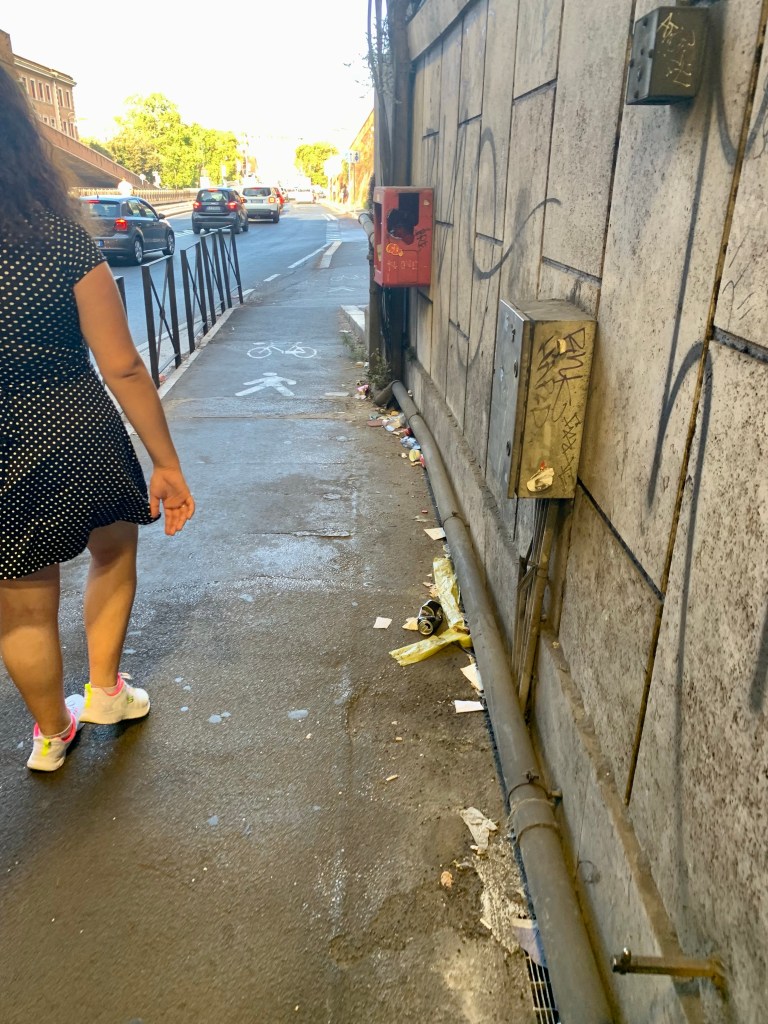 După-amiaza am mers sa vizitam cartierul Trastevere, cunoscut pentru restaurante și baruri. Ca sa ajungem acolo, am mers din nou pe jos (face bine la silueta ☺️) și am ajuns chiar pe malul Tibrului. Am zis ca nu mai aduc in discuție mizeria de pe străzi, dar nu ma pot împiedica.