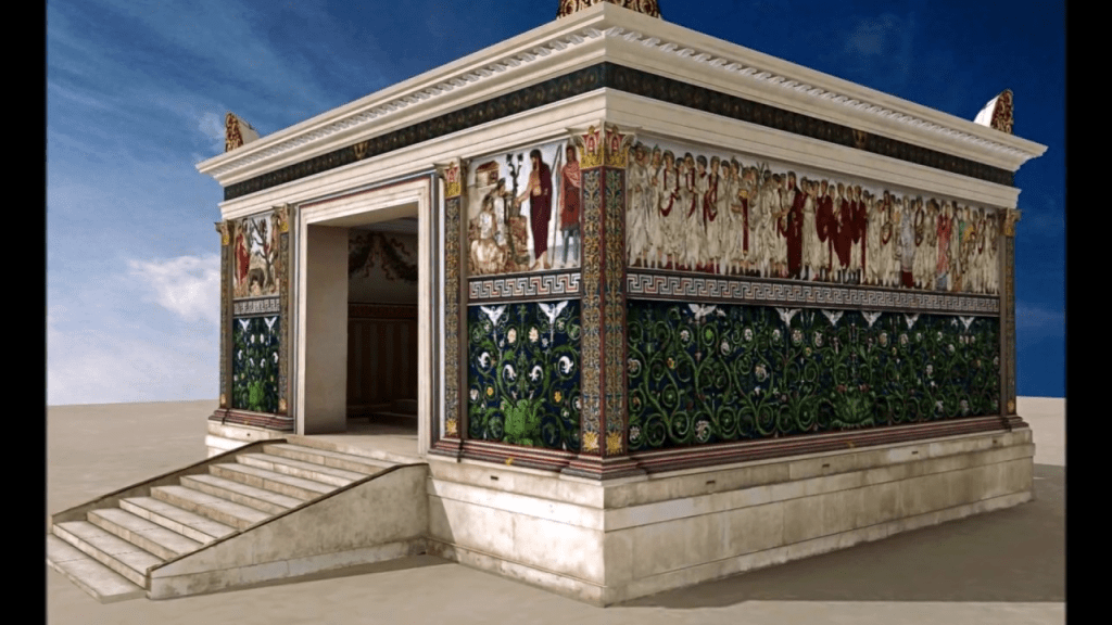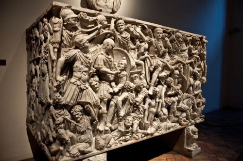 Construcția Ara Pacis a fost comandată de Augustus și de Senatul roman pentru a sărbători succesul campaniilor militare împotriva galilor.