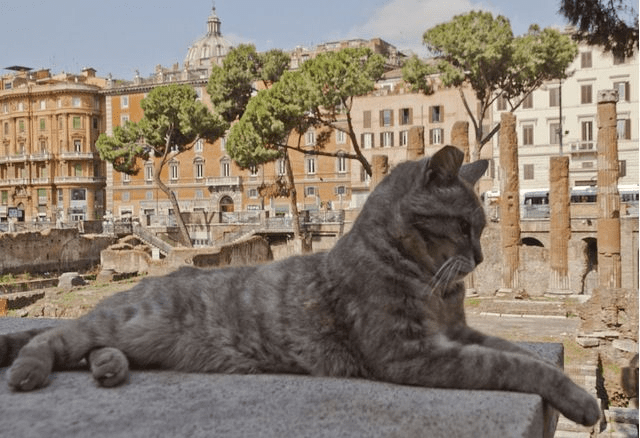 Pisicilor le place să se plimbe printre ruinele vechilor monumente romane. Din acest motiv, în Largo di Torre Argentina se afla un adăpost special amenajat pentru pisici, unde voluntari din întreaga lume lucrează și au grijă de cel puțin patru sute de pisici abandonate.