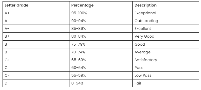 Revenind, în majoritatea colegiilor și universităților din Canada, ca și în cele din SUA, notele sunt acordate după un sistem bazat pe cinci puncte, folosind literele A, B, C, D și E/F, A indicând excelent, C indicând mediu și F indicând eșec.