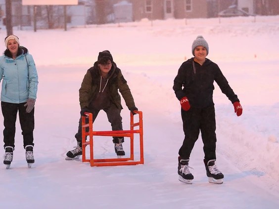 Din fericire, canadienii s-au gândit și la bieții imigranți care nu au pășit niciodată cu patinele pe un lac înghețat sau un patinoar acoperit. Astfel, au inventat niște “structuri” pe care le poți împinge pe gheață, păstrându-ți în același timp echilibrul și fără a te arunca în cap. Cam asta este și ideea la bază.