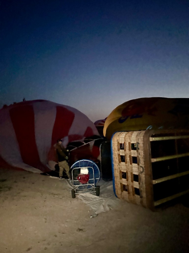 La 3:00 am, un microbuz marca Mercedes (turcii adoră mașinile nemțești) a sosit la hotelul nostru și ne-a condus la locul faptei, adică într-un câmp imens în afara orașului. Recunosc că imaginația mea a luat-o razna și mi-am închipuit tot felul de scenarii ciudate pe drum, dar odată ajunși în acel câmp, ne-am reunit cu viitorii colegi de nacelă. 😆