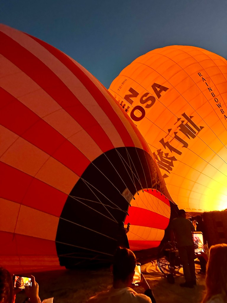 După ce toată lumea a urcat la bord și piloții au făcut instructajul de aterizare (la semnalul lor, toată lumea se așează pe vine și se ține de niște mânere în interiorul nacelei… Iarăși m-am simțit ca în Indiana Jones 🤣), balonul s-a umflat cu un zgomot puternic. Curând, cu inimile bătând cu putere, ne-am înălțat încet deasupra solului. Pământul a început să se micșoreze sub noi, iar peisajul ni s-a dezvăluit în toată splendoarea sa.