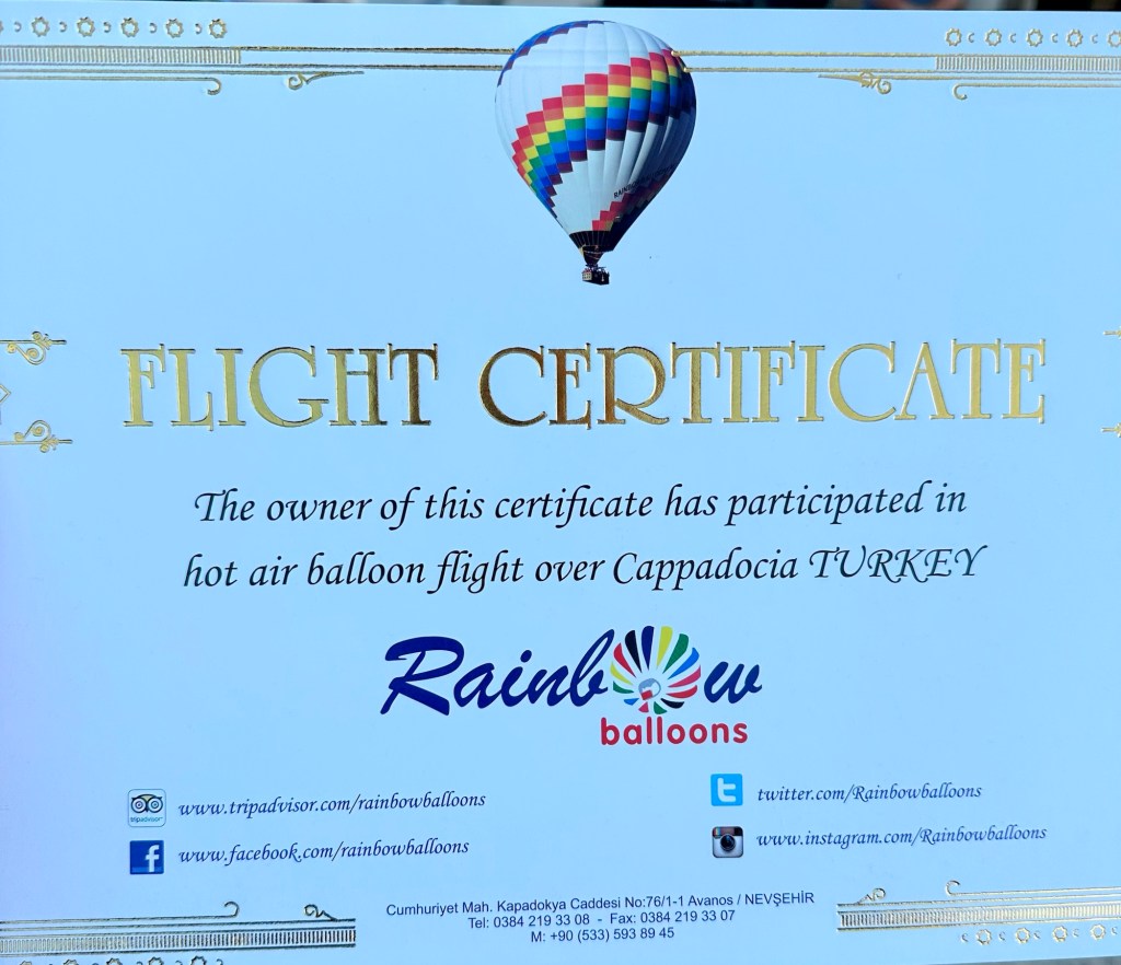 Compania cu care am zburat se numește Rainbow Balloons și totul a fost minunat. Piloții experimentați au asigurat un zbor lin, fără nicio problemă, iar aterizarea a fost rapidă și ușoară. După ce am coborât din nacelă, piloții au deschis două sticle de vin spumos și am sărbătorit împreună. La final, am primit certificatele de zbor cu balonul cu aer cald. Totul a fost perfect, ca la carte. 👌🏻