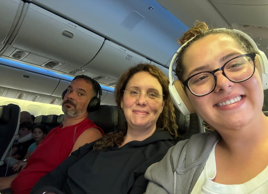 Am pornit la drum cu entuziasm (și multă cafea), am trecut prin dealurile din Gatineau și am bifat toate întrebările clasice de plecare: „Ai luat pașapoartele?”, „Ai încărcat telefonul?”, „Sigur n-am uitat nimic?”. Noroc cu sora mea din Montreal, care ne-a salvat de la o lună de parcare scumpă la aeroport — am lăsat mașina la ea în fața casei și am plecat spre terminal cu inima ușoară și bagajele grele.