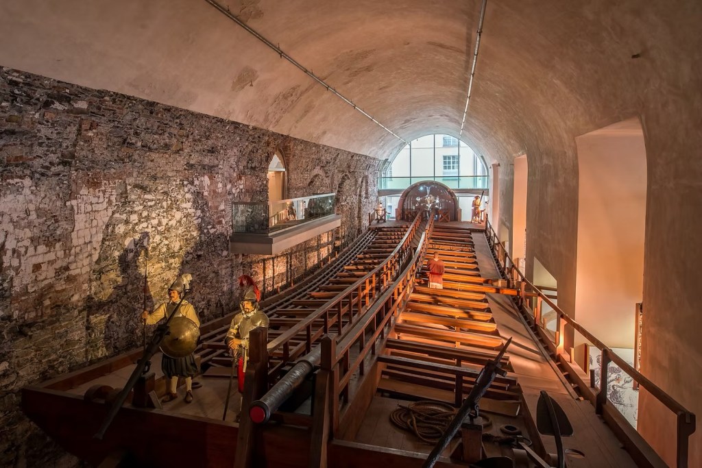 We walked through a life-size replica of a 17th-century galley, with creaking wooden decks, oars as big as tree trunks, and mannequins that looked like they had seen a lot in their lives.