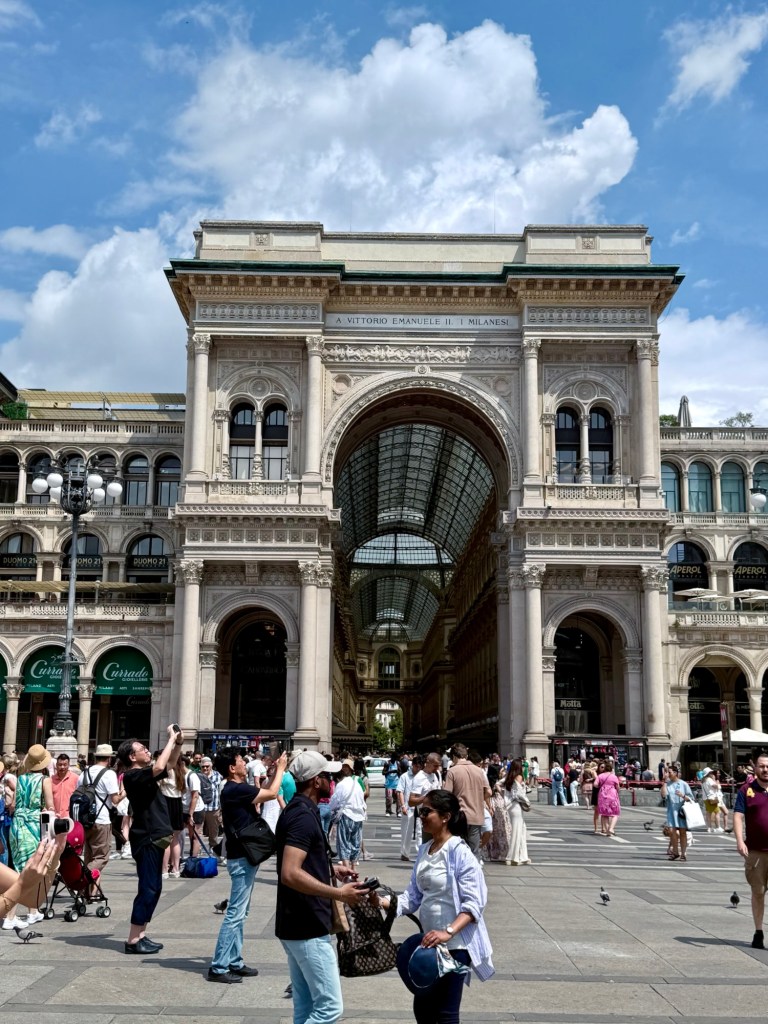 After taking in the view from the roof of the Duomo, we stepped into the Galleria Vittorio Emanuele II – where Milan shows off its elegance with nonchalance. Opened in 1877, the gallery is like a royal walkway covered in glass and steel, one of the first structures of its kind in Europe. If Instagram had existed in the 19th century, this would have been the place to take all the photos.