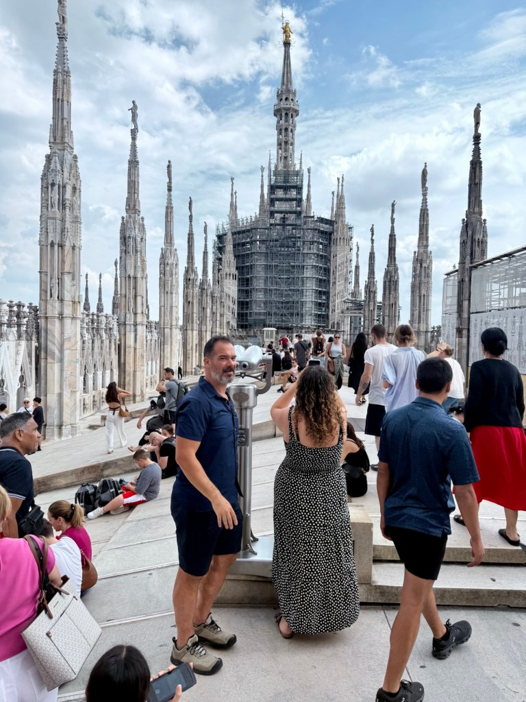 Milan had us running around. It took us up on rooftops, spun us around on mosaics, walked us through history, and tested our patience (especially in the morning, when Anna would not wake up without some serious negotiation). But it also won us over. With its Gothic beauty, stories hidden in its walls, small, intense coffees, our laughter in front of monuments, and Georges’ jokes, which have already become family legends.