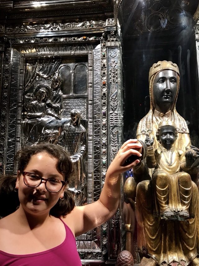 Am reușit, intr-un final, sa intram in biserica. Tocmai la intrare am aflat ca, de fapt, am stat atâta timp la coada sa o vedem pe “La Moreneta”, o statuie a Maicii Domnului, cunoscuta sub denumirea de “Madona Neagra”. Aceasta este o sculptura reprezentand-o pe Fecioara Maria cu Pruncul in brate. Pelerini vin sa o vadă și sa i se închine pentru ca se spune ca face miracole și vindecări. Unul din miracole fiind acela ca ajuta femeile sa rămână însărcinate. 🙄😳